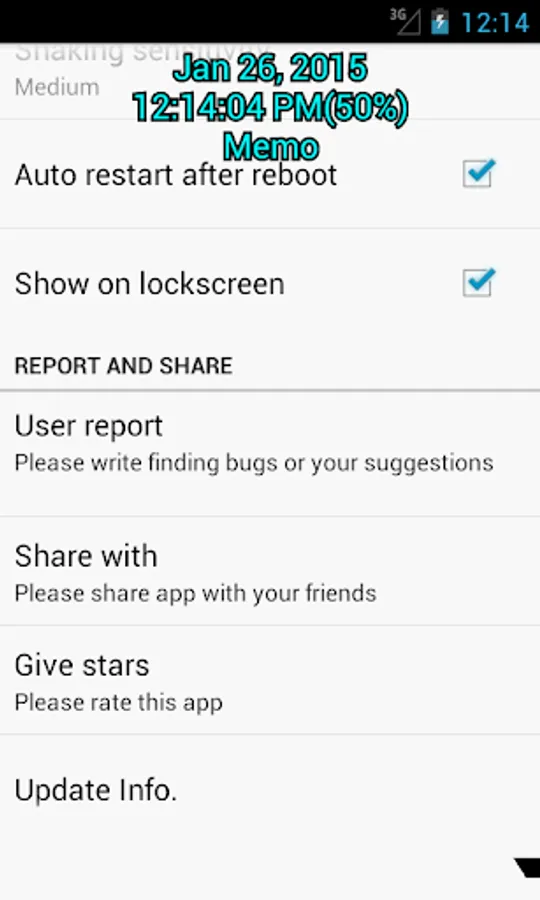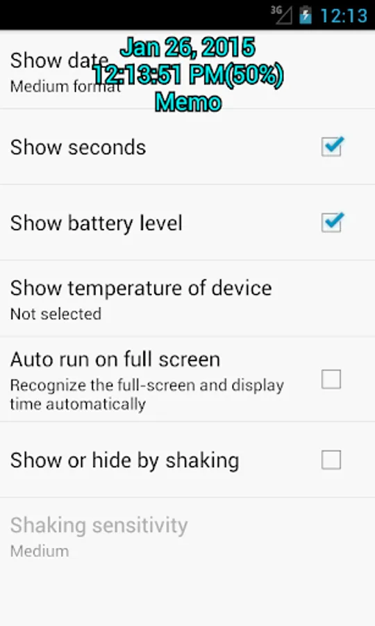 When you play games or watching movies or YouTube streaming, you can check current time, memo and battery level easily.