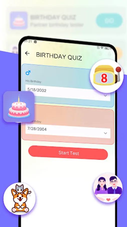 -Test strength of your beloved life partnership by playing the test game by date of birth, it is exact similar as the test by name but here you have to provide your and your partner's date of birth in order to get the strength value of your life