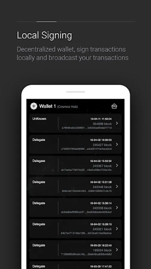 - Non-Custodial wallet: all transactions are generated through local signing.