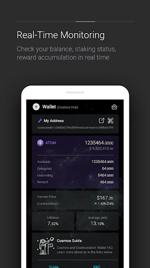 - Manage Atom, IRIS, BNB, Kava, OKT, BAND, XPRT, IOV, CTK, AKT, DVPN, FET, CRO, ROWAN, XKI, OSMO, MED, SCRT Tokens and check real-time price change.