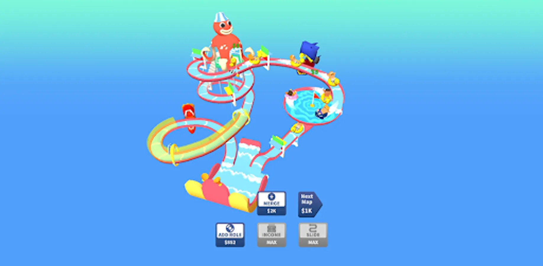 Earn money by managing aqua park. Grow your business, become the biggest aqua park boss in the world and join the fun!