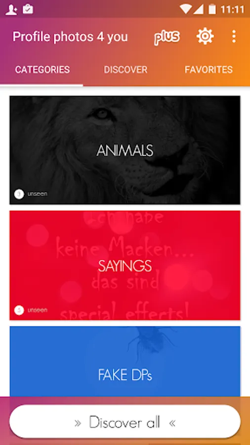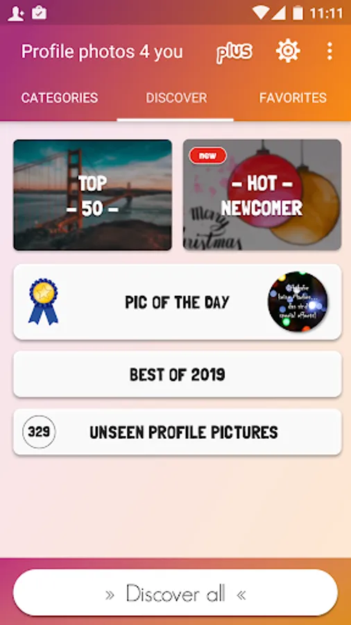 Discover the latest trendy pics or the 50 best-liked ones in the so-called DISCOVER tab. With the button „profile pics not seen yet“ cool guys don’t miss any avatar.