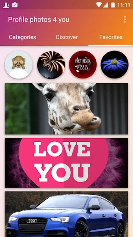 Tag profile photos that you like with a heart and they appear in your favorites. Create your own area and keep all your liked profile photos handy at any time.
