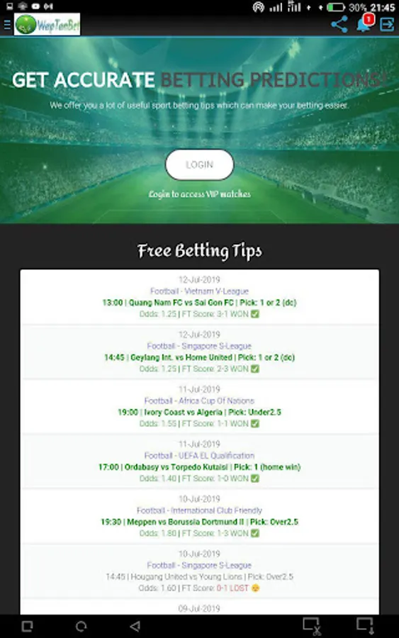 We offer you a lot of useful sport betting tips which can make your betting easier. Start winning today by using our best betting tips app. life's made of by small victory