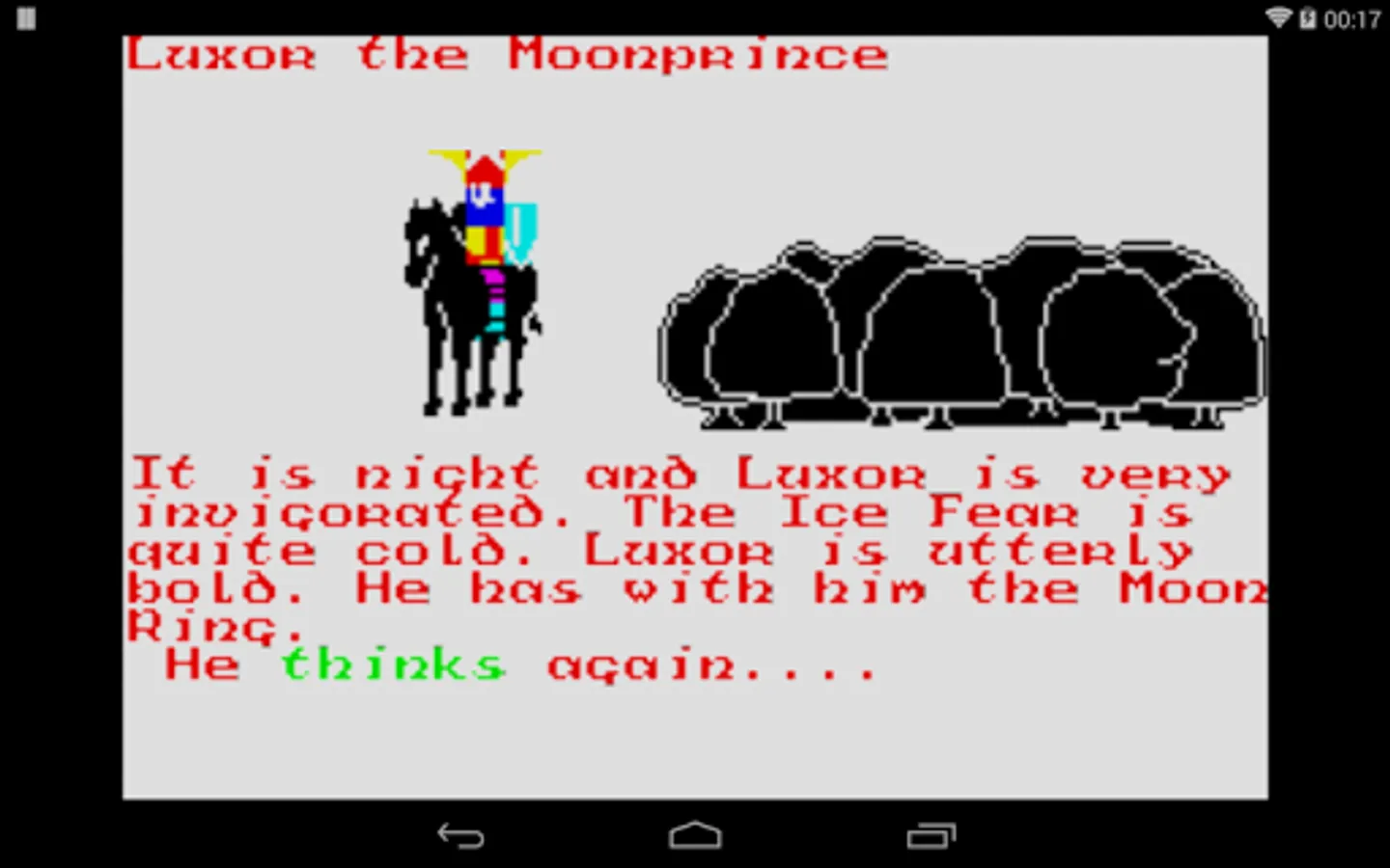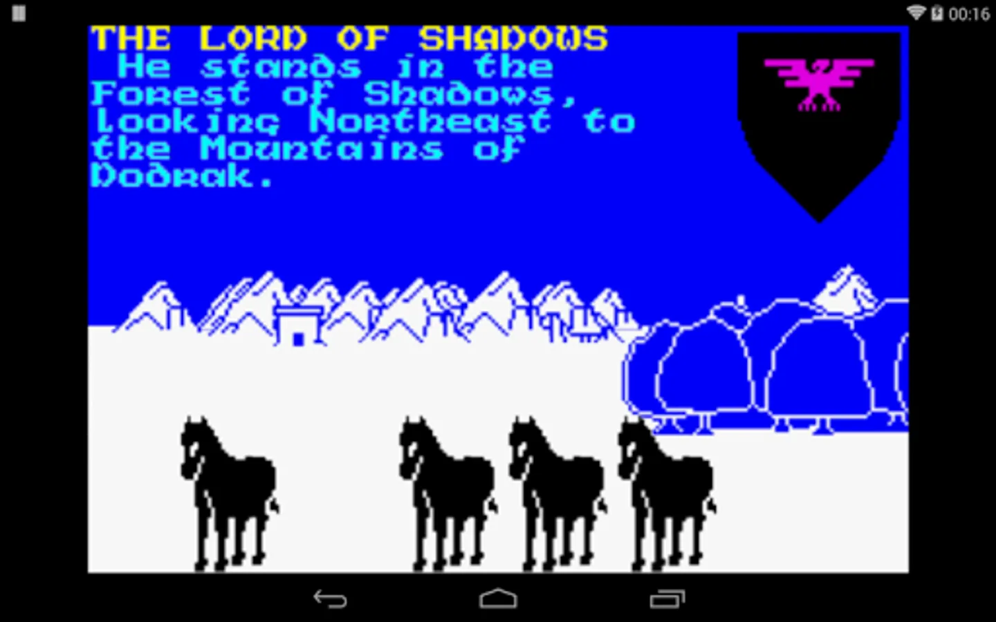 An 8-bit style remake of Mike Singleton's 1984 classic adventure game "The Lords of Midnight". The remake remains as faithful as possible to the original game, while adding touch screen controls for the Android platform.