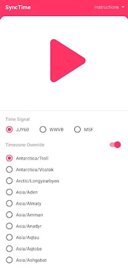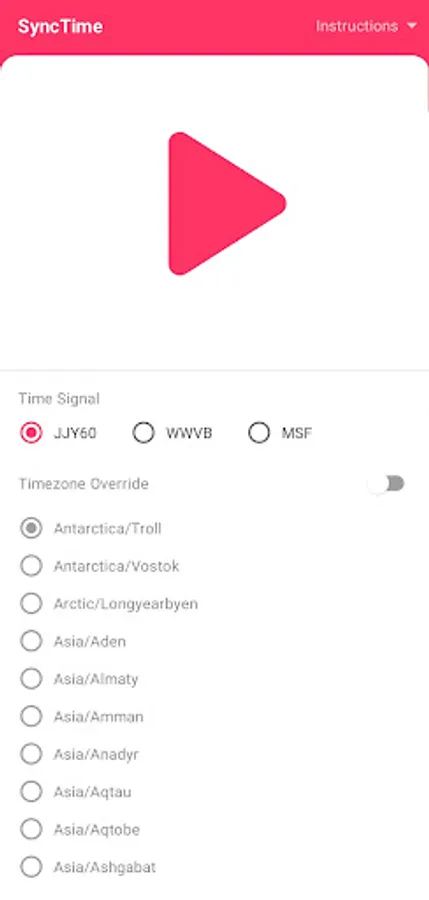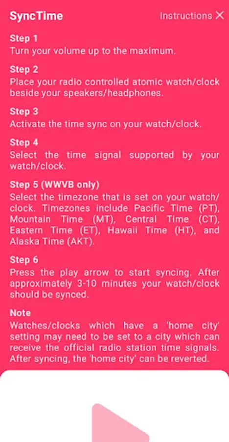 6. Press the play arrow to start syncing. After approximately 3-10 minutes your watch/clock should be synced.