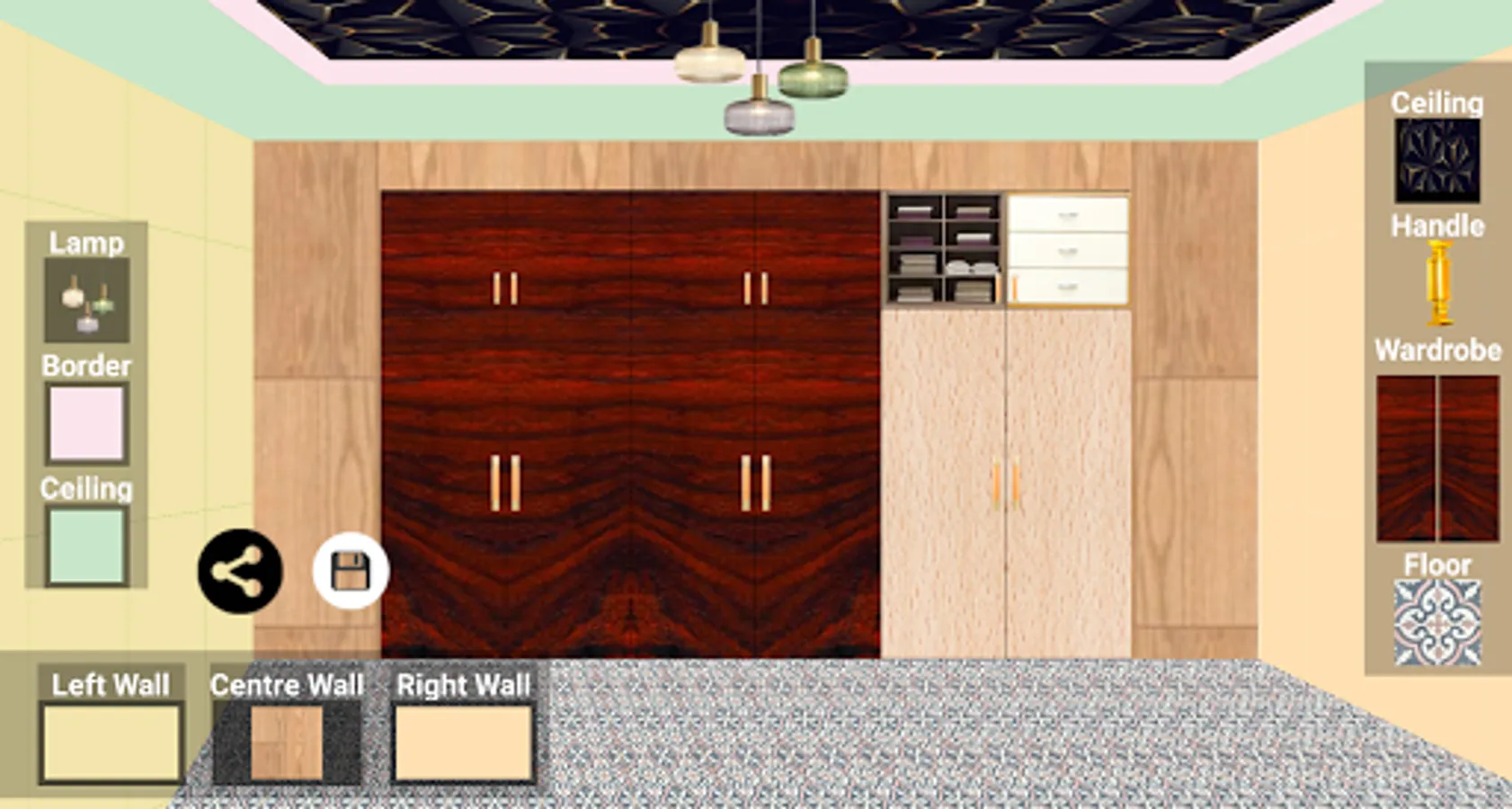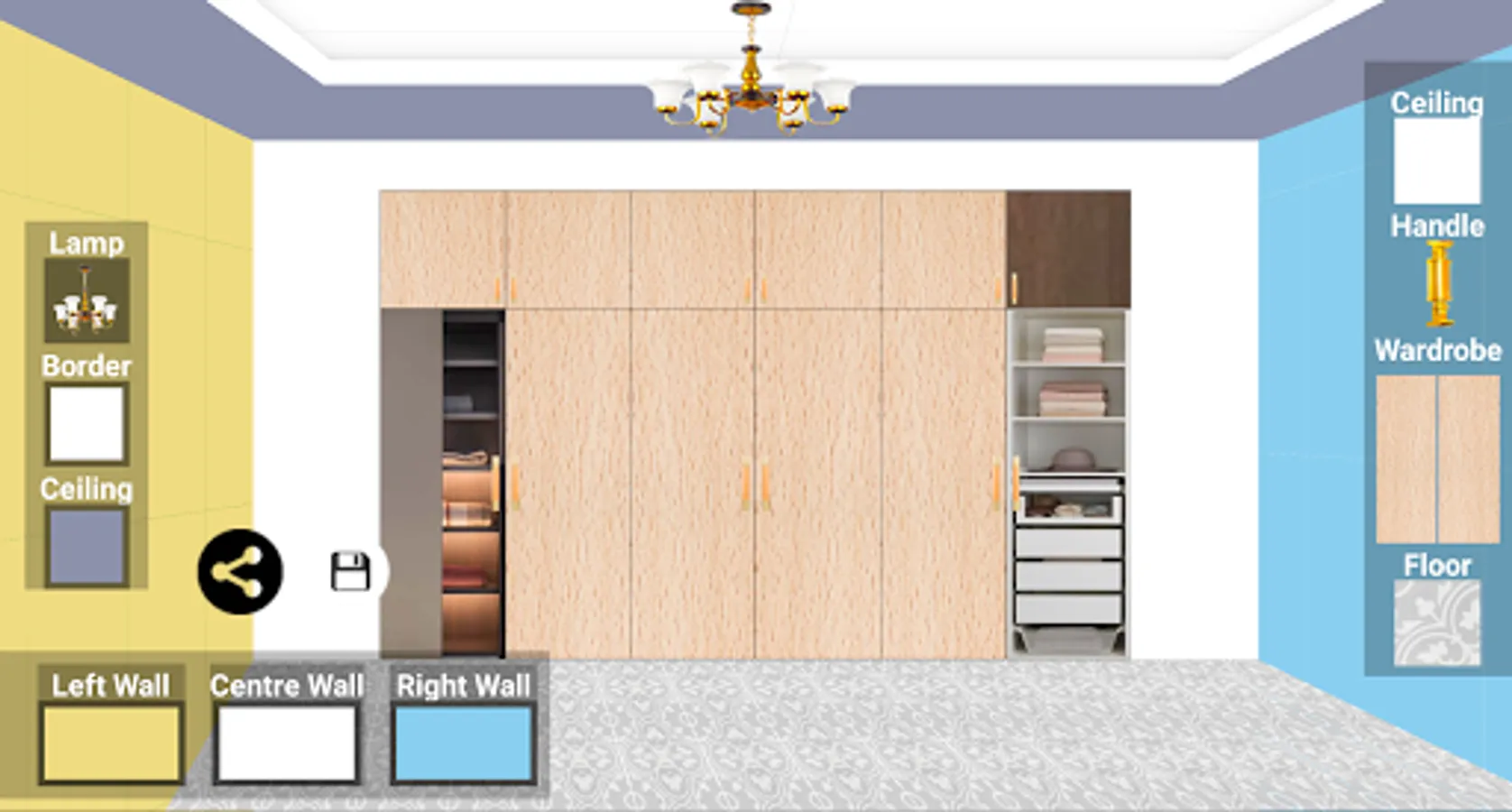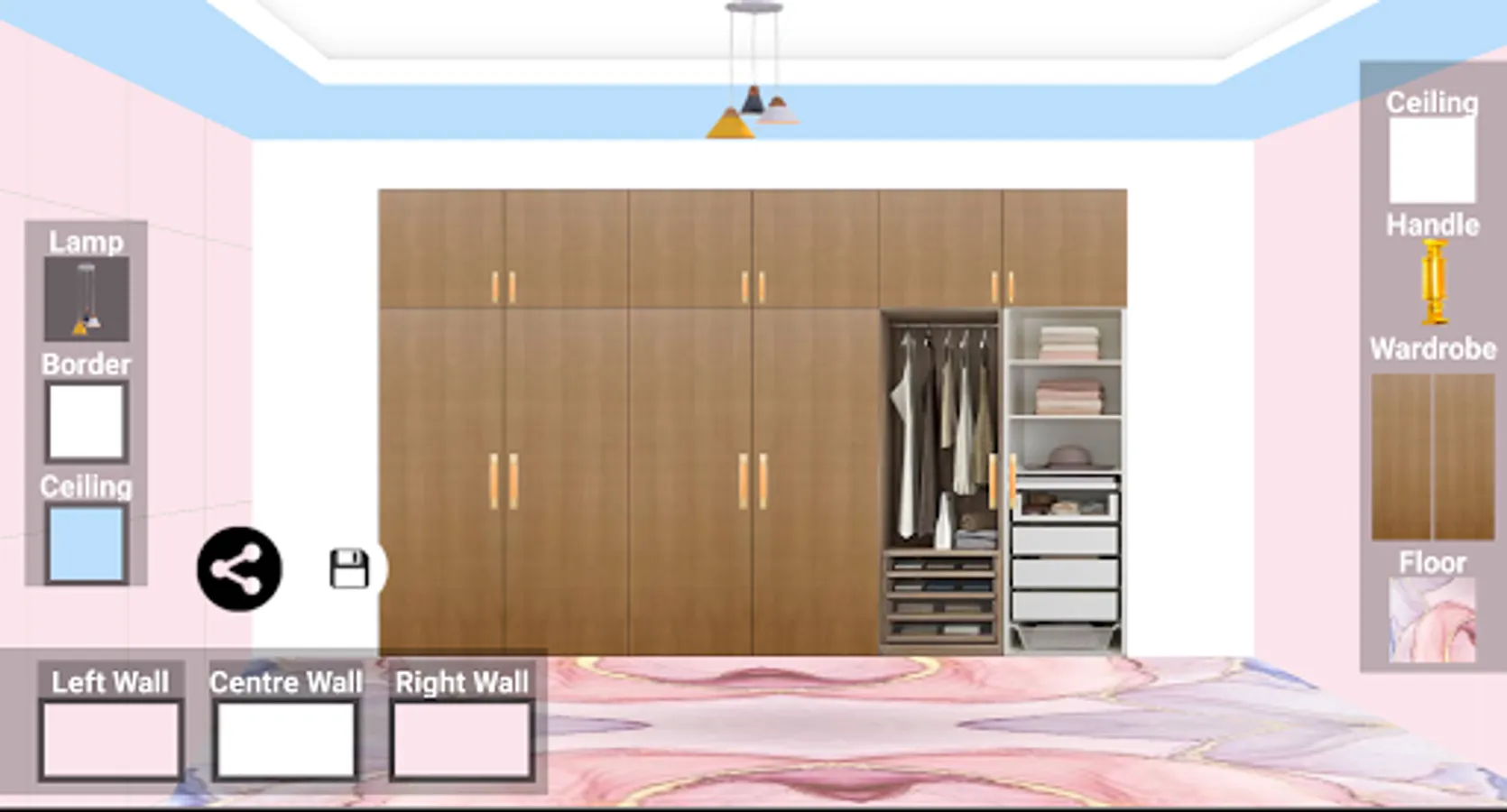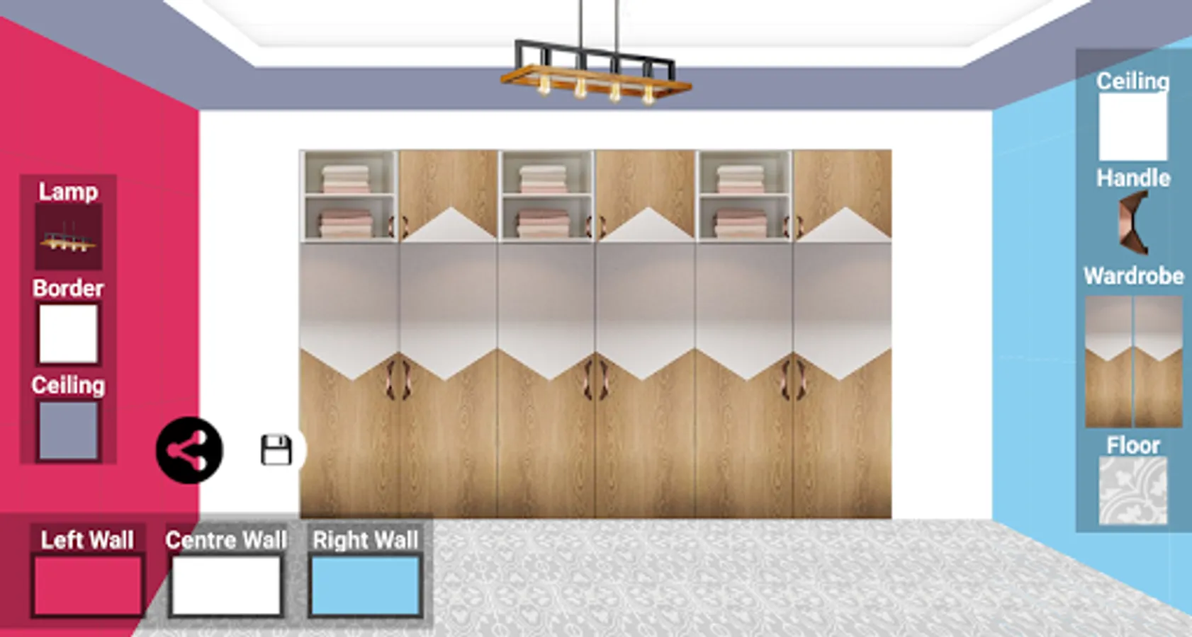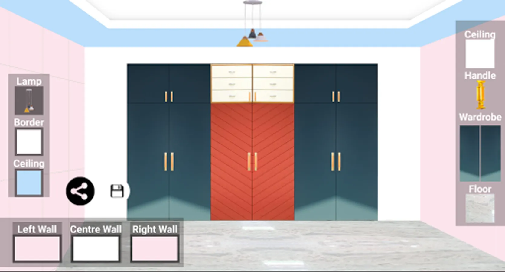 design your wardrobe based on ceiling,wall, Floor color and Texture combinations