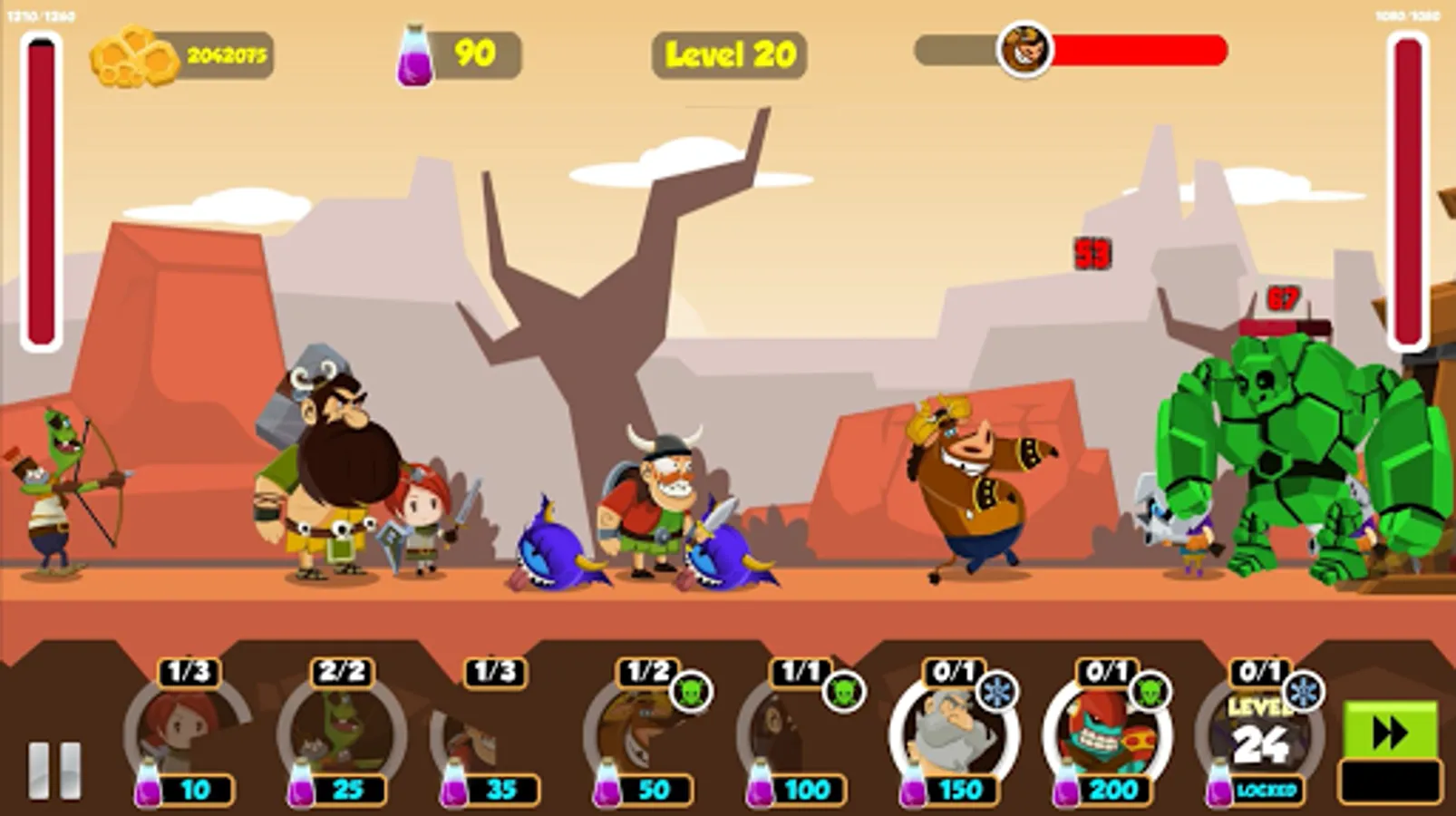 Warrior's Battle is a action and adventure game. You have to destroy enemies' bases. Deploy your troops and defeat the enemies one. Upgrade your warriors and beat all the enemies' bosses.