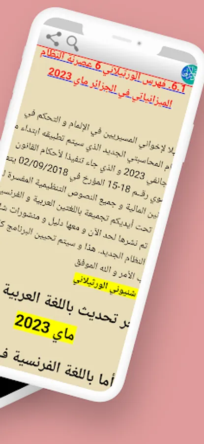 It is related to the financial laws and all the regulatory texts explaining it, compiled in Arabic and French that have been published so far, along with a guide and publications explaining this new system. This and the program will be updated as needed