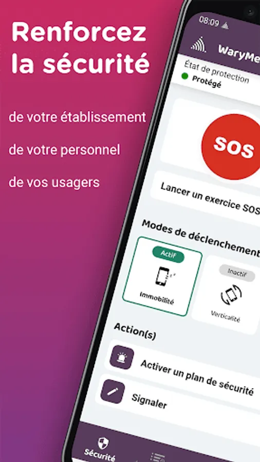 WaryMe becomes the digital and wireless carrier of your security plan. terrorist threat, industrial accident, invasion site, personal assault, medical problems, climatic event or cyber attack, it is a modern and innovative response to new security challenges.
