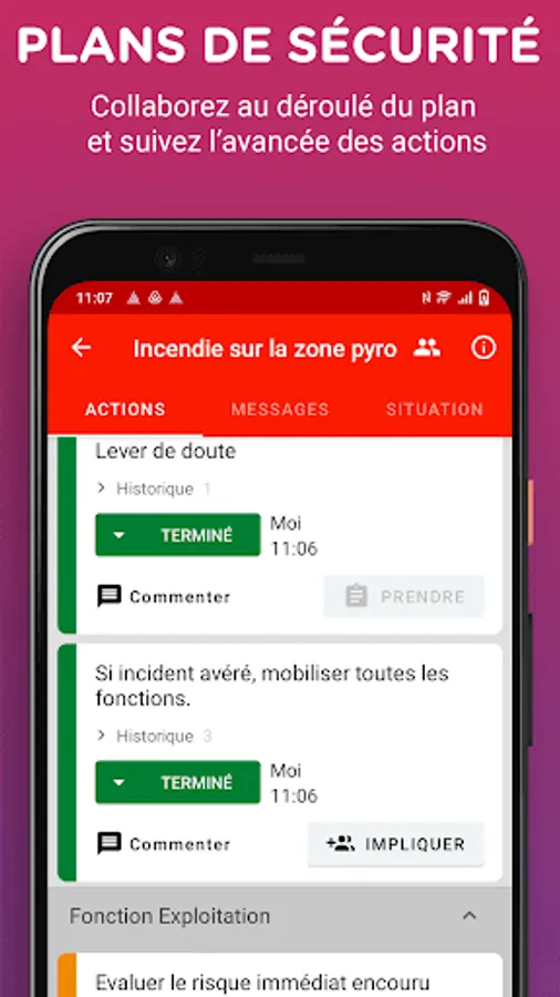 Safety plans: Facing a major event, trigger a crisis plan. Collaborate with resolution and follow the progress of the actions in the script.