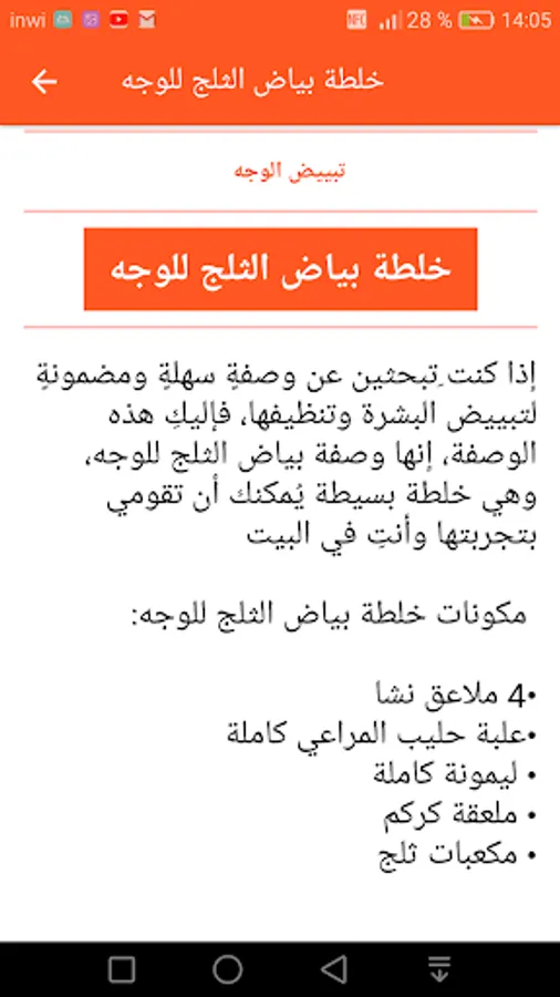 You have the latest facial whitening and skin whitening recipes and the latest natural facial recipes and know the complexions of the face and skin quick and effective in the face and whitening of the skin and dry dry, fatty and mixed and quick in lightening and moisturizing and beautifying the skin.