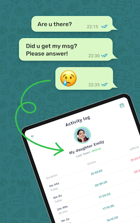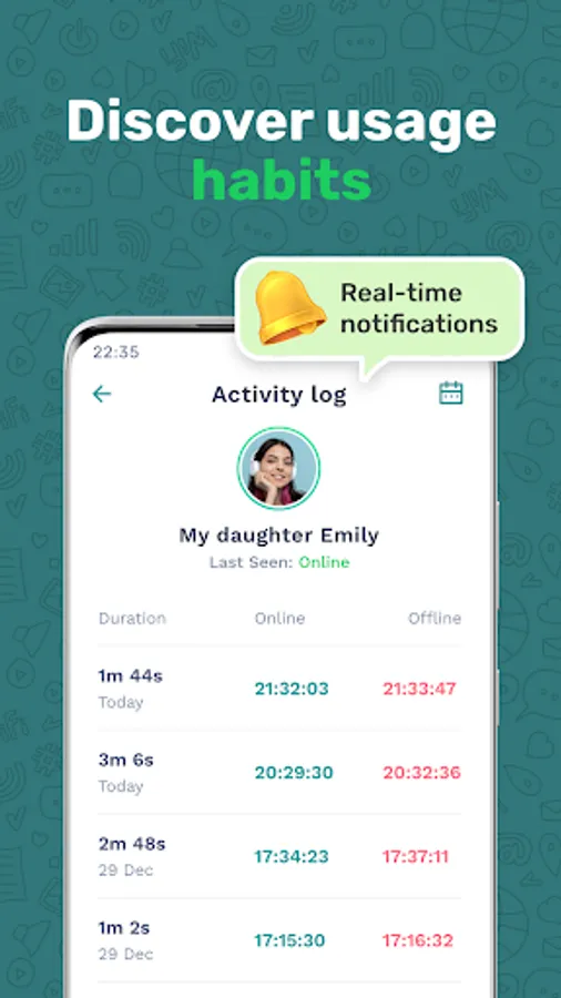Keep track of their online/offline activity at all times, seven days a week.