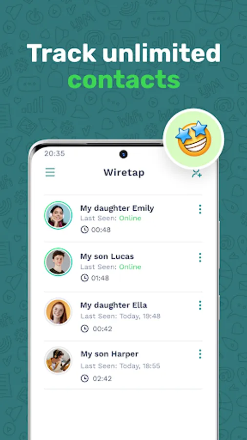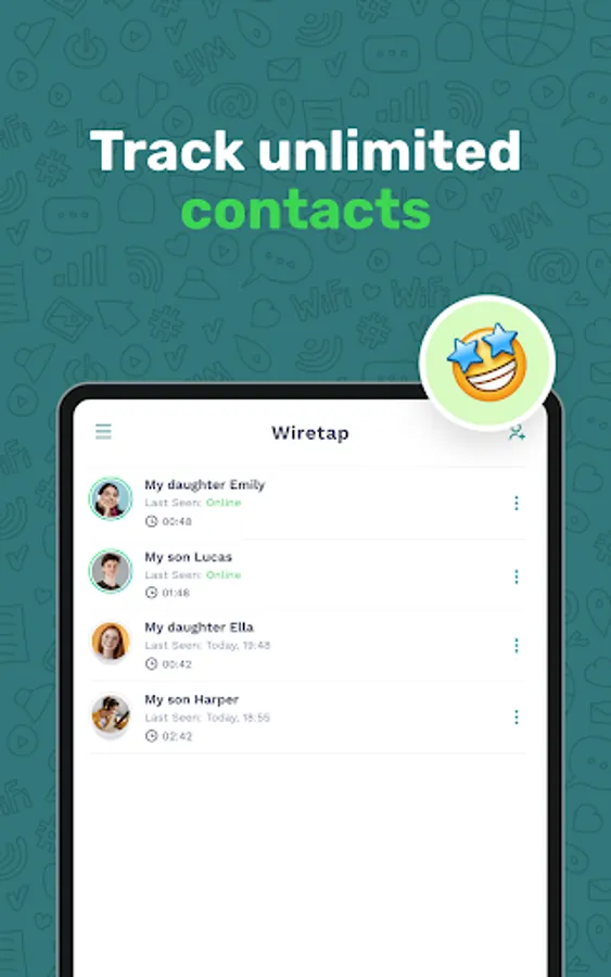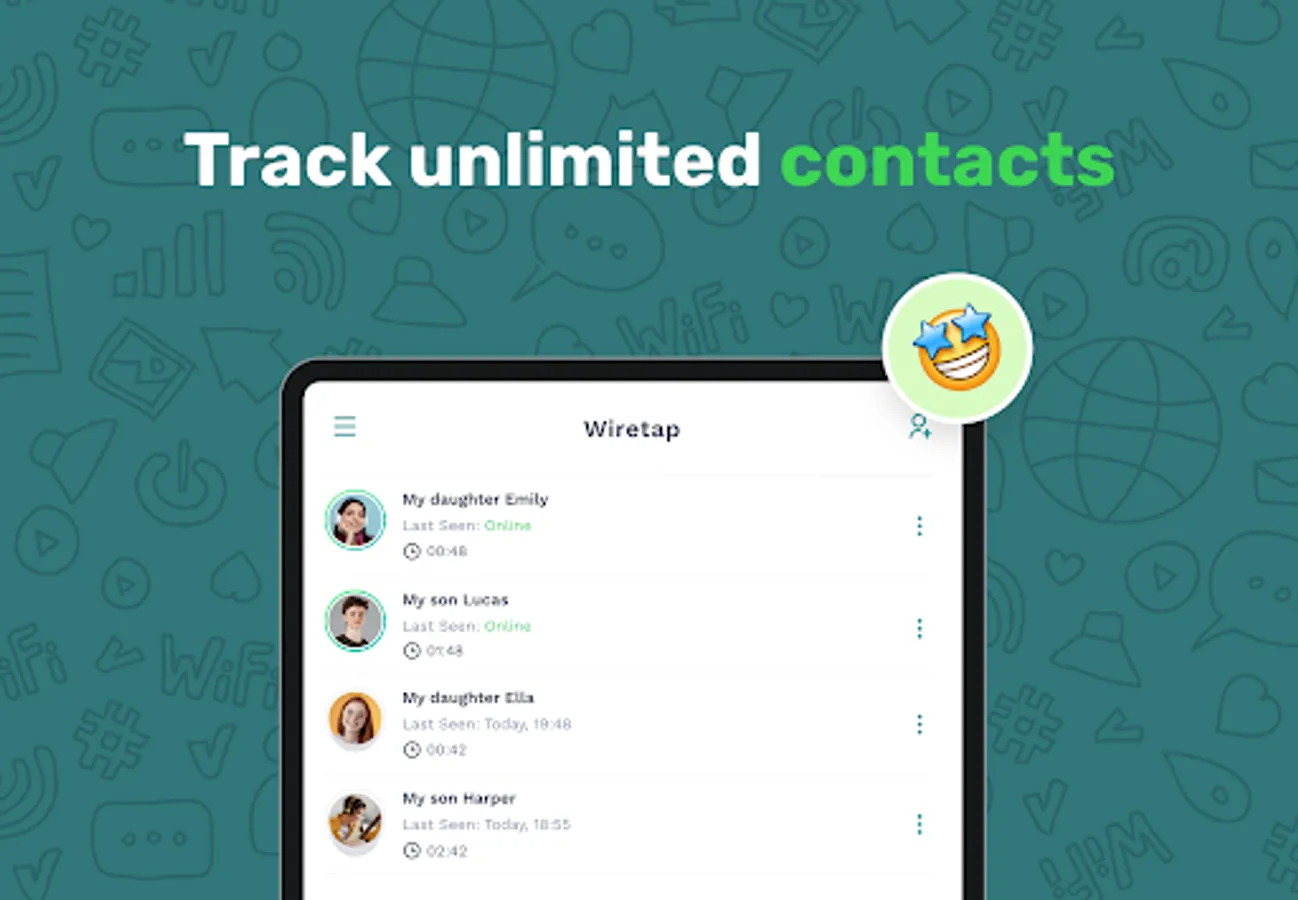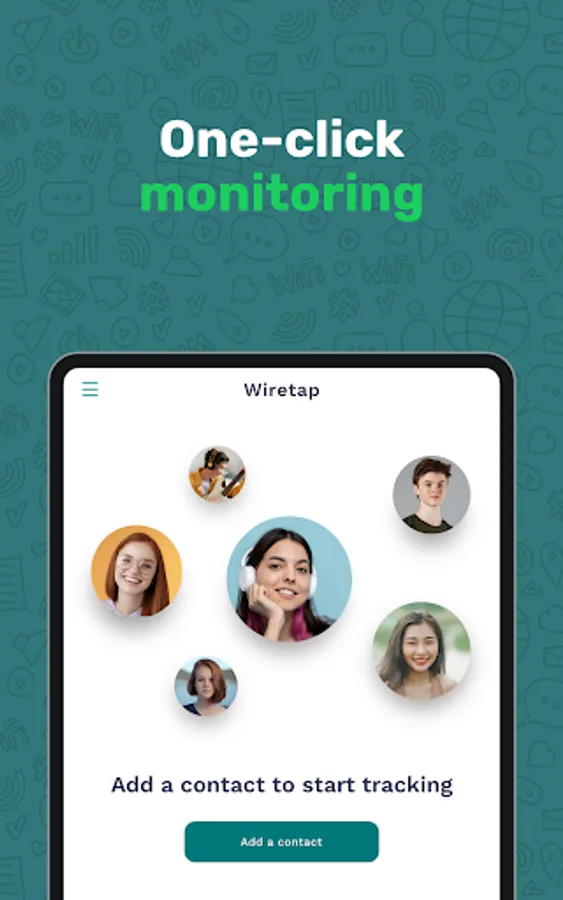 Wiretap is an online monitoring solution designed explicitly for worried parents or organizations. We do not keep or use any of your device’s private information. Wiretap is not affiliated with any third-party app on your device, and the use of any other brand name does not imply any association with it.
