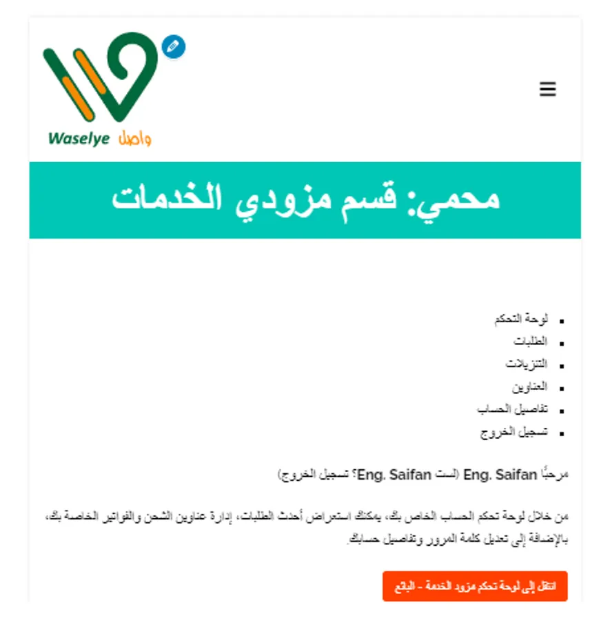 Wasel delivery service is a service that aims to deliver orders to the homes of citizens without any effort to facilitate their lives by using contemporary technology and in a way that suits their daily needs.
