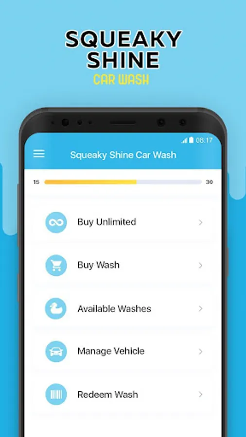 Download the Squeaky Shine Car Wash app to redeem your free car wash! Become a Scrub-A-Dub Club Member and get the most out of our services. This app allows users to directly manage their club plan, purchase washes online, and send washes to friends and family.