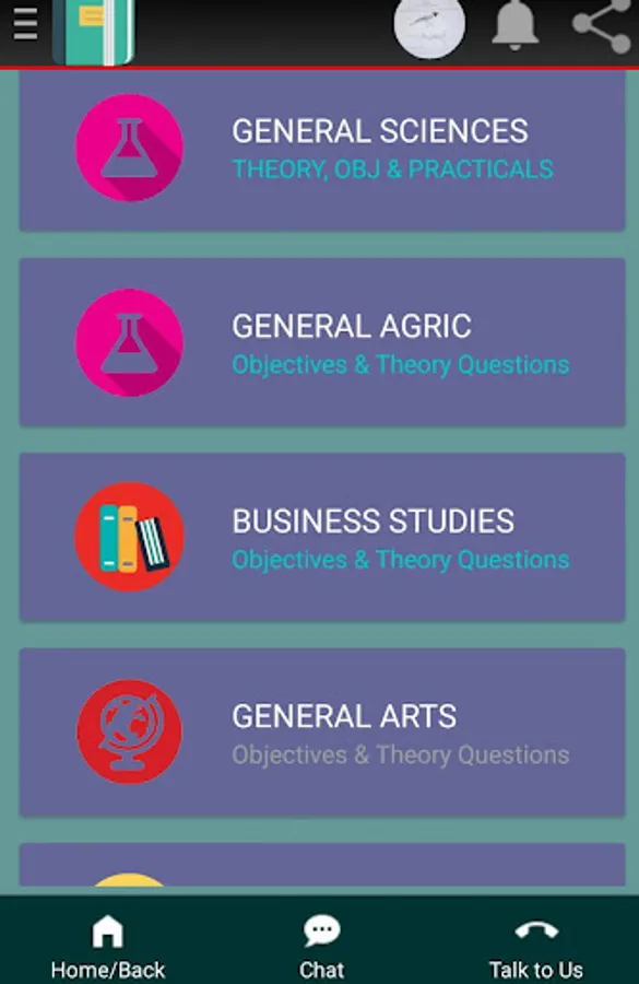 The app contains wassce past questions for elective subjects like