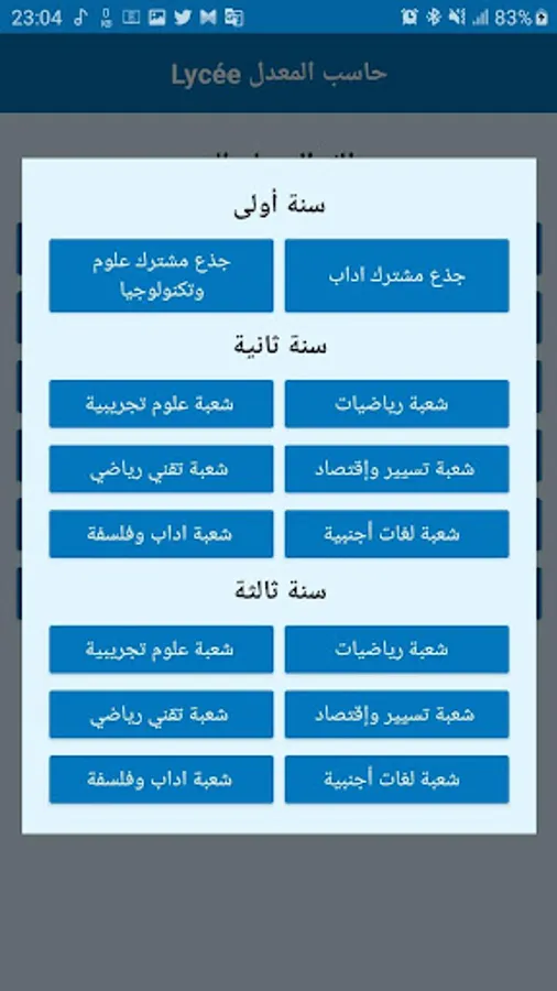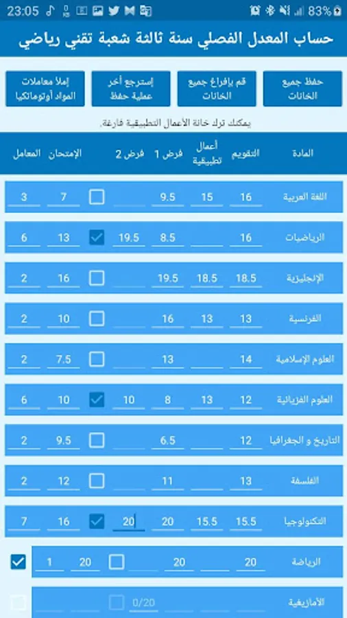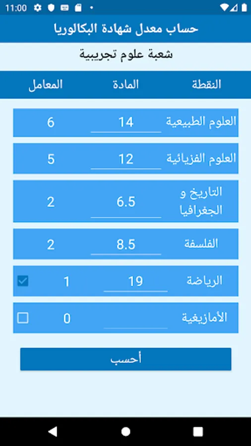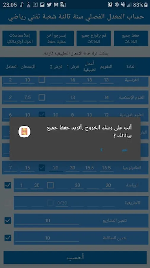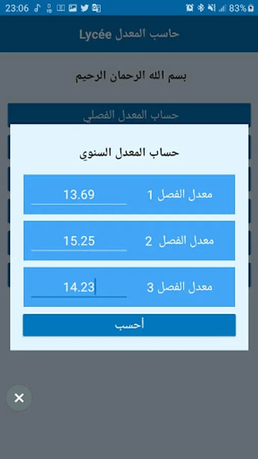 the حاسب المعدل Lycée app is an android application that helps the Algerian high school students or their parents or teachers to calculate many types of averages like they calculate it in the Algerian high schools, for example it helps to calculate the :