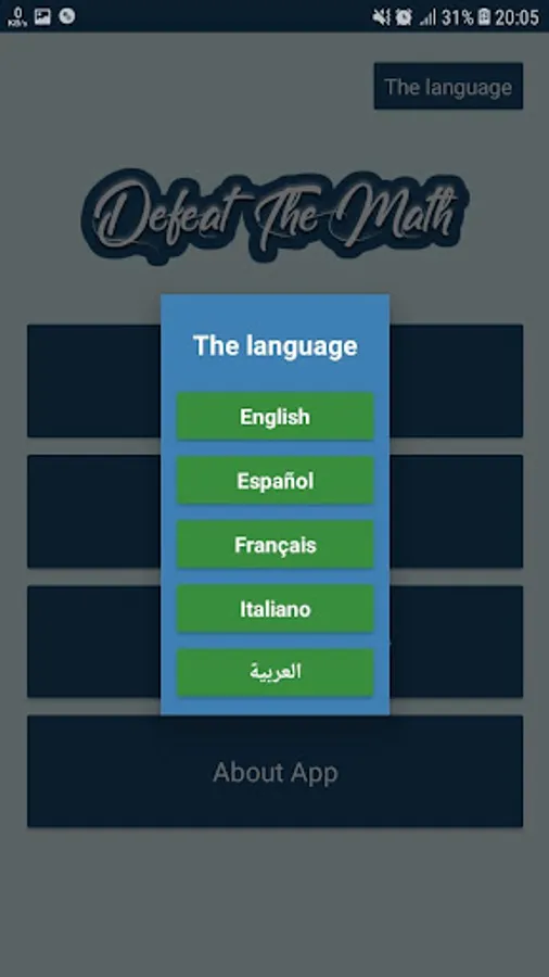 - You can choose between English, Arabic, French or Italian for the language.
