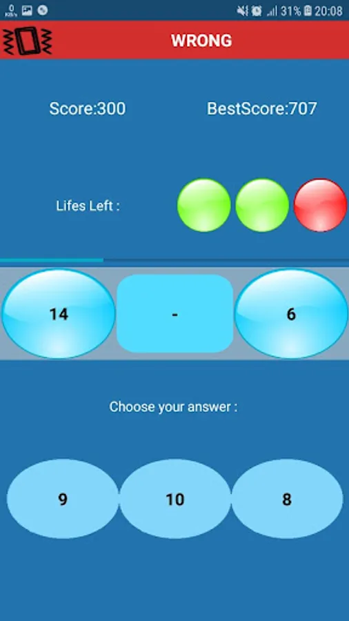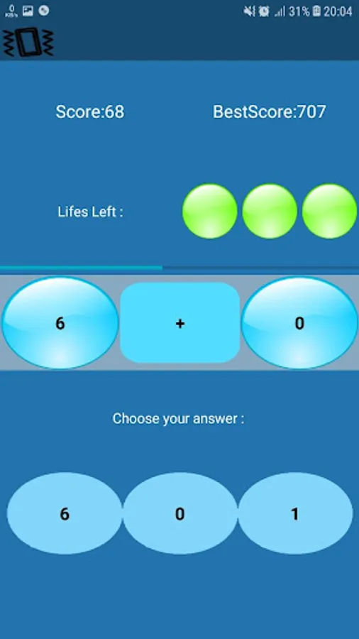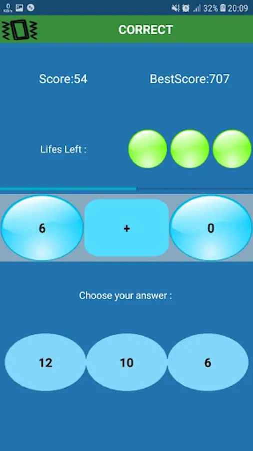 The best game to strength mental computation. This is app in an android game it contains some math equations and 3 choices, you have to choose the right choice as soon as possible to get more points !it starts with some simple math equations and it gets harder level by level so you reach some big numbers and other operations , so how much do you think you can get ? go ahead and play for the highest score !