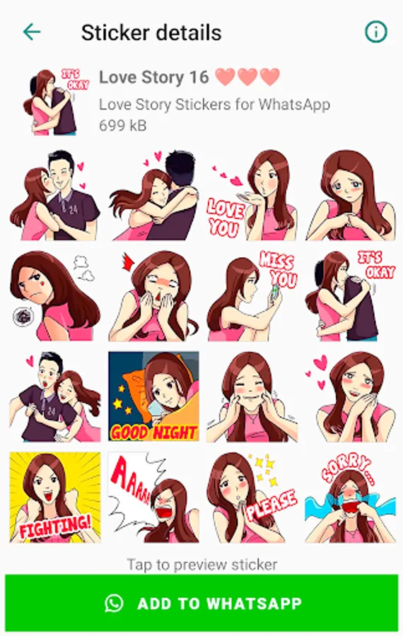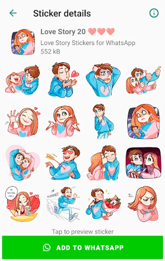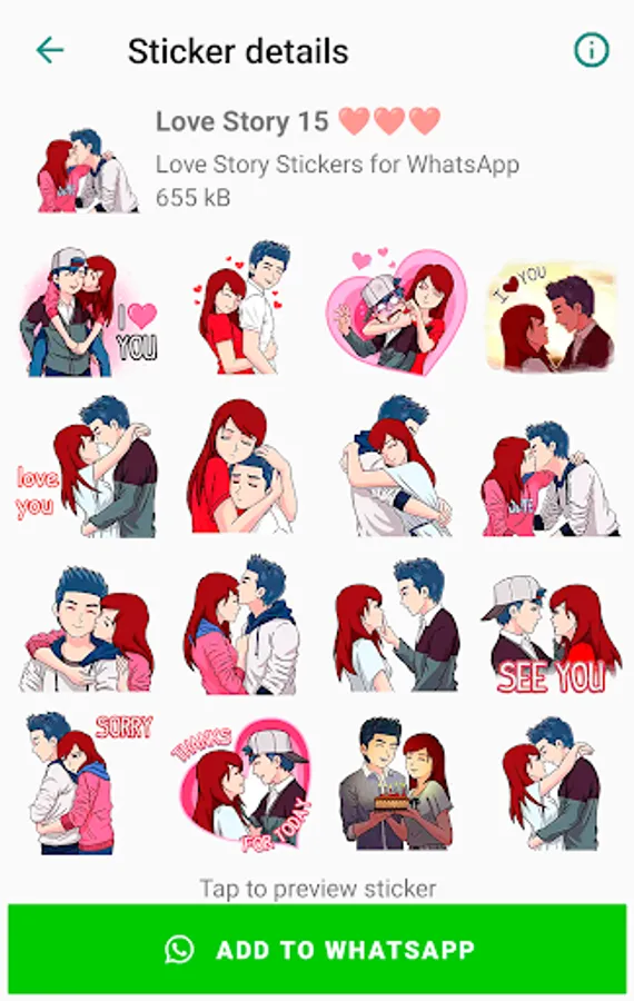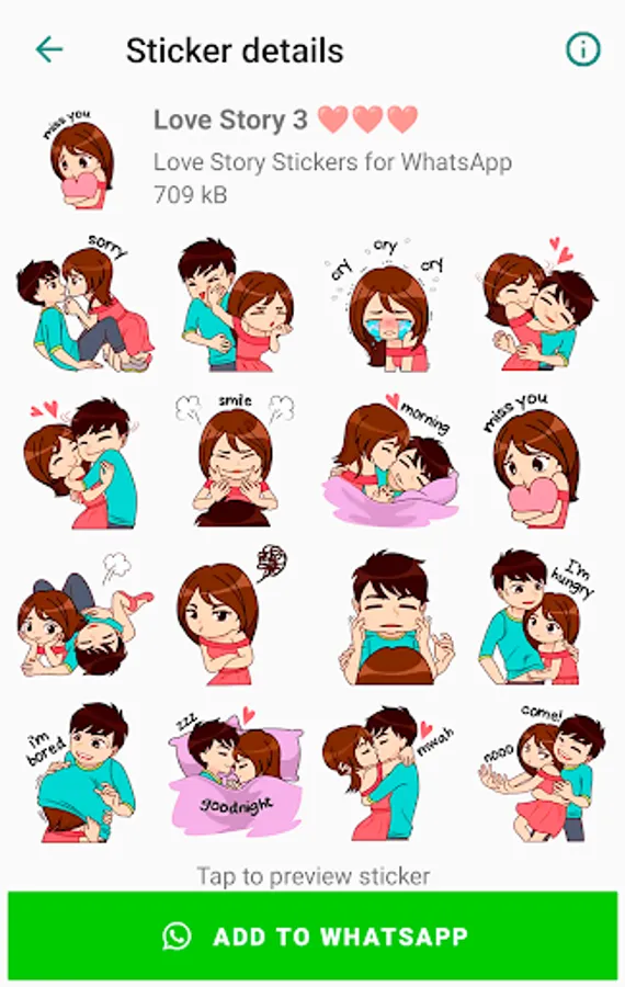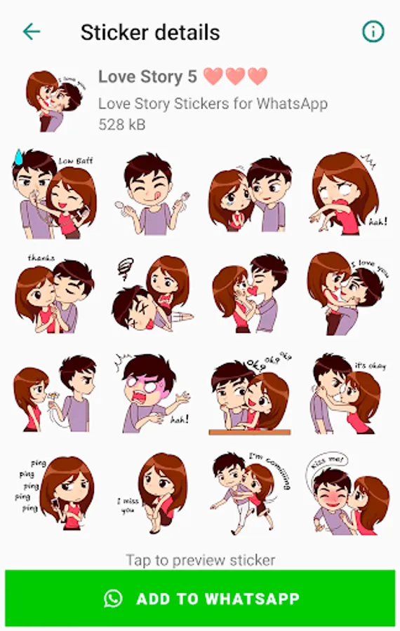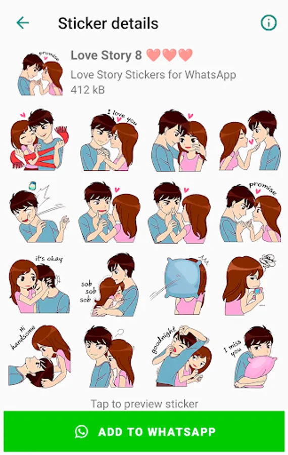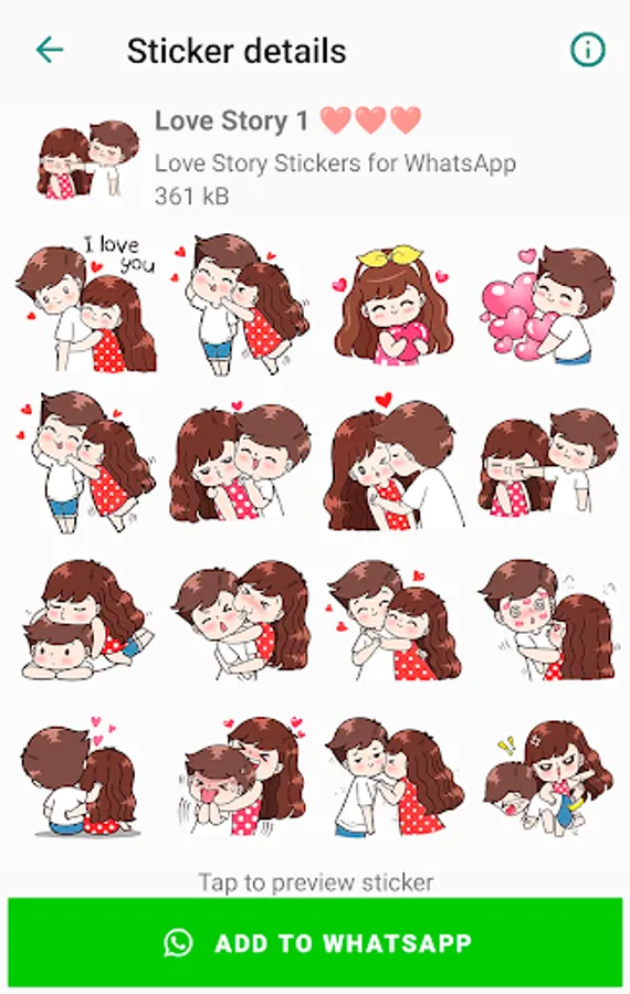 Romantic love stickers and a lot more love emojis for WhatsApp for loved ones. Enjoy these romantic love story stickers and share with your boyfriend / girlfriend on chat!