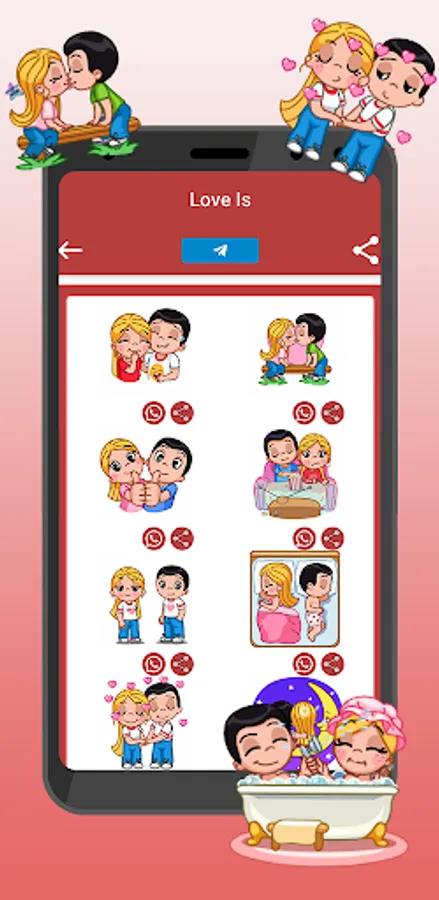 👩❤️💋👨 This application allows you to install these animated stickers directly on Telegram or share them on WhatsApp as WASticker.