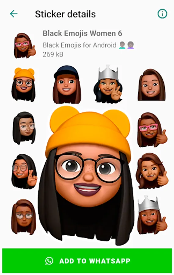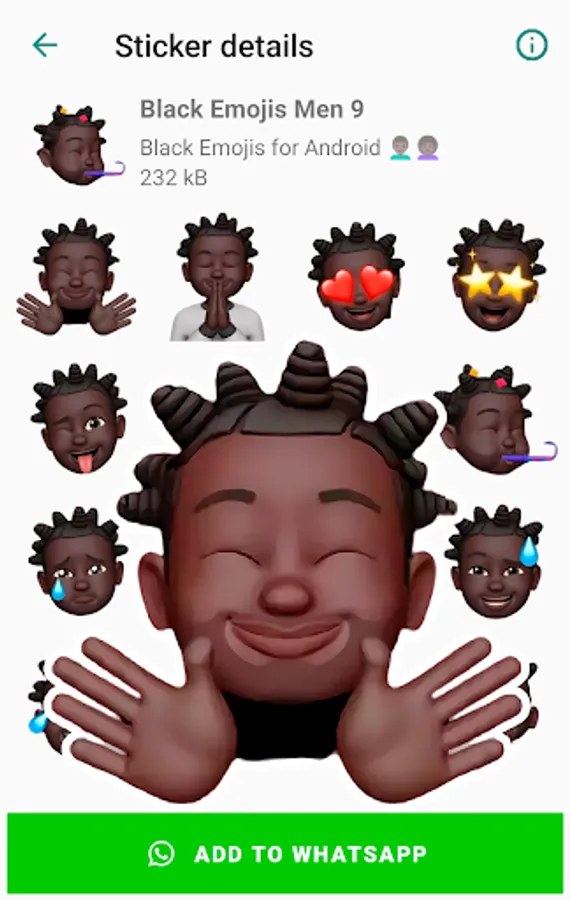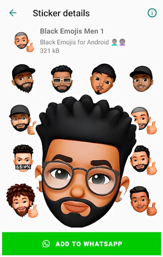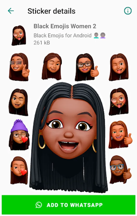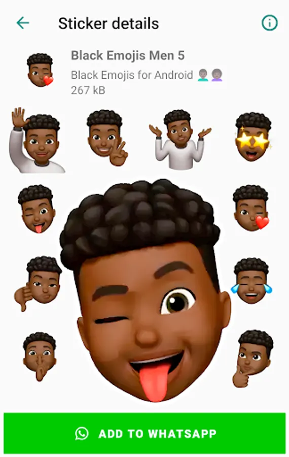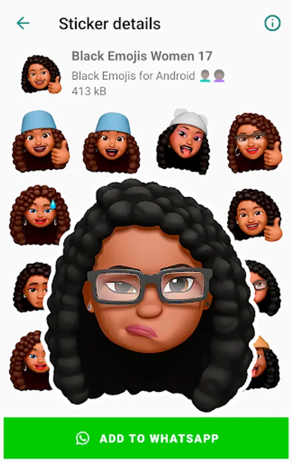 - Hundreds of black people emoji stickers for WhatsApp like black Memoji for Android