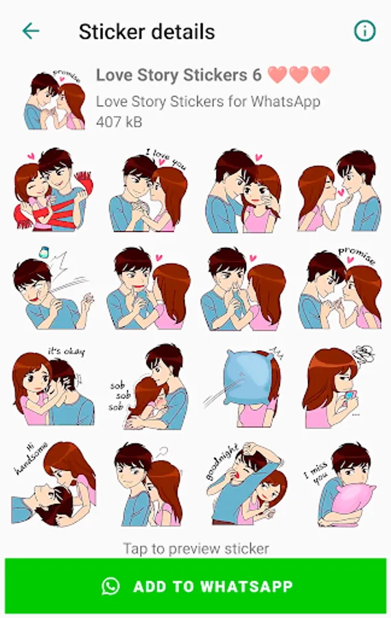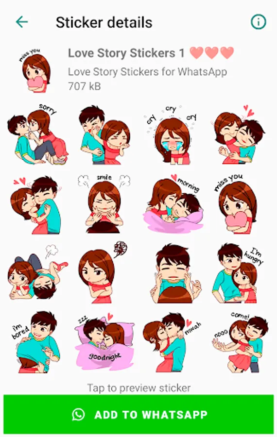 Enjoy amazing romantic love story stickers, love stickers for WhatsApp and share with your boyfriend / girlfriend on chats and messengers!