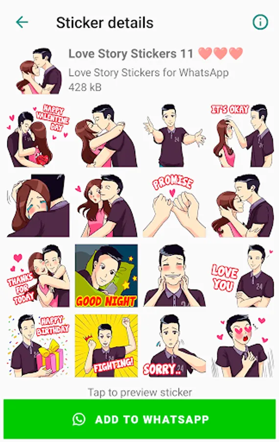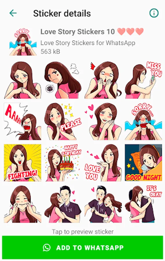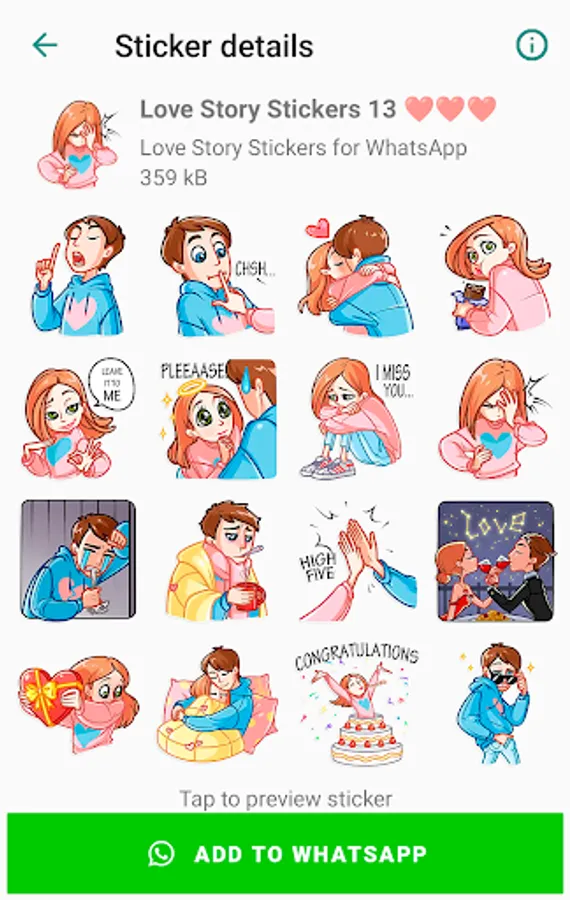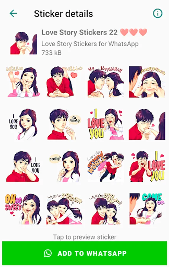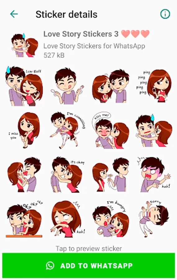 The best love story and romantic sticker packs are finally on WhatsApp! This sticker app includes new love stickers for WhatsApp that you can send to your loved one!