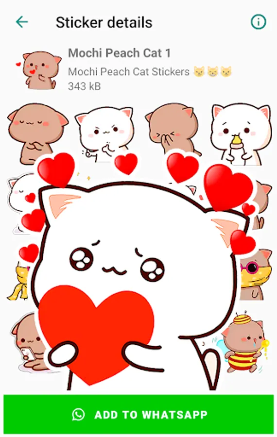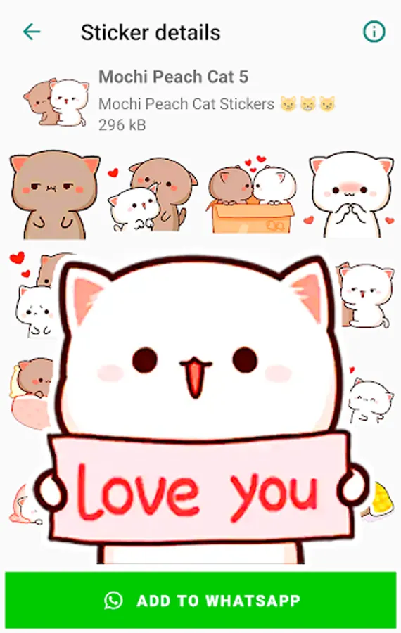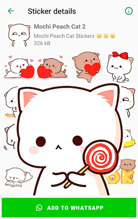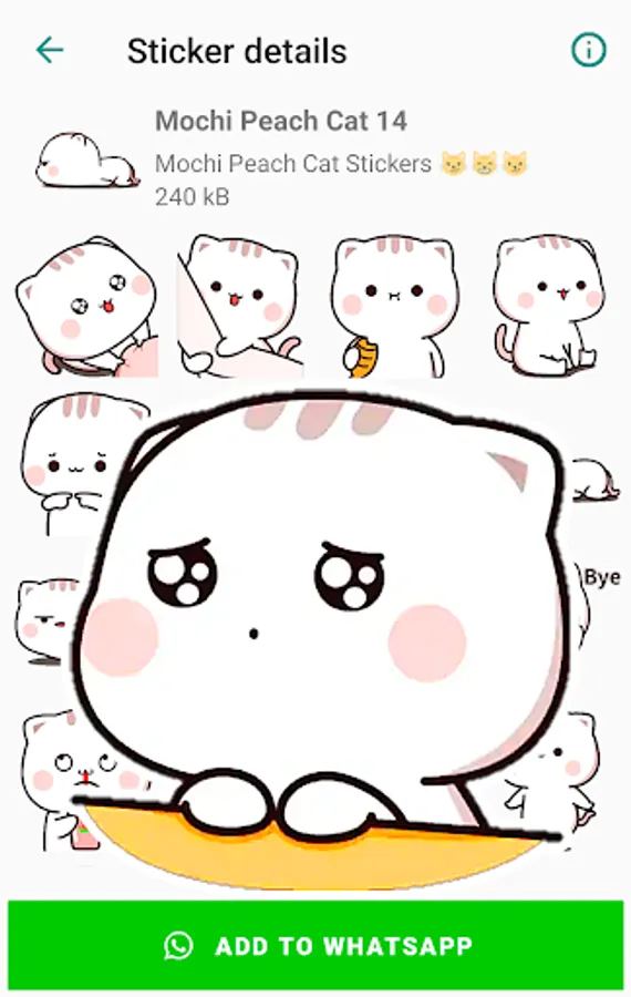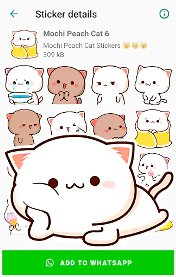 Find the cutest Mochi stickers and customize all your conversations with the best stickers. You can send Mochi Cat stickers directly to WhatsApp. All stickers of kawaii Mochi cat and peach are free and easy to use.