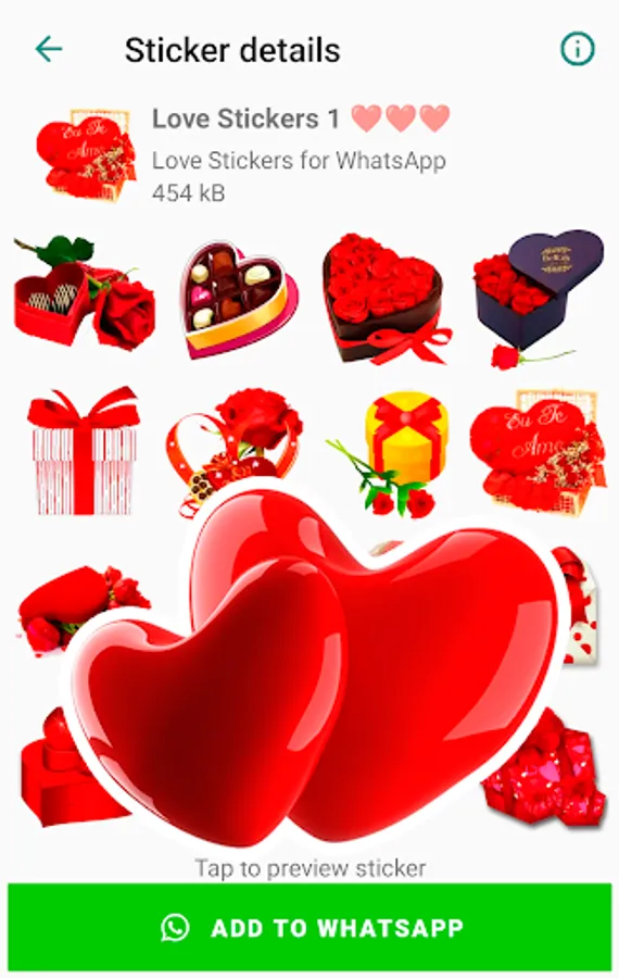 Start your day by sending beautiful love stickers and a lot more romantic stickers to your loved one / girlfriend / boyfriend in your chats and messages. You can easily add love emoji stickers to WhatsApp with just a click of a button.