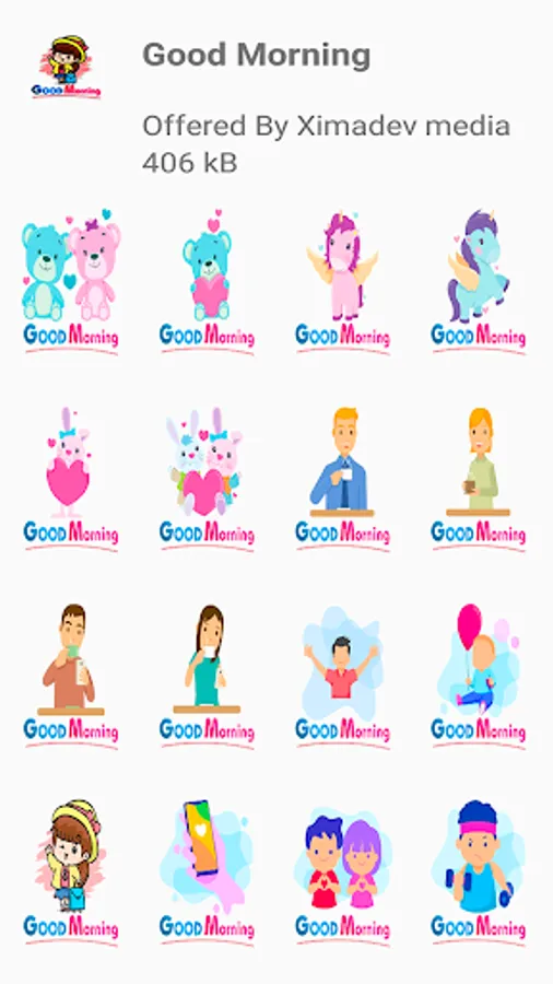 You will get a high collection of new morning stickers quick and easy to use. You can express your morning greetings to your partners with a cool & colorful stickers.