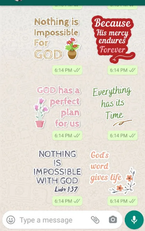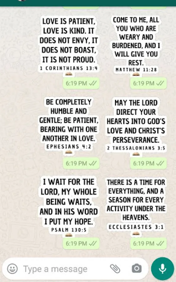 More than 100 stickers with Christian phrases and verses to share with anyone through WhatsApp.