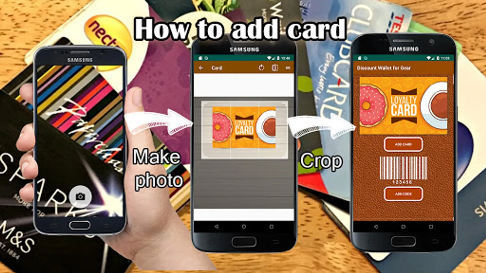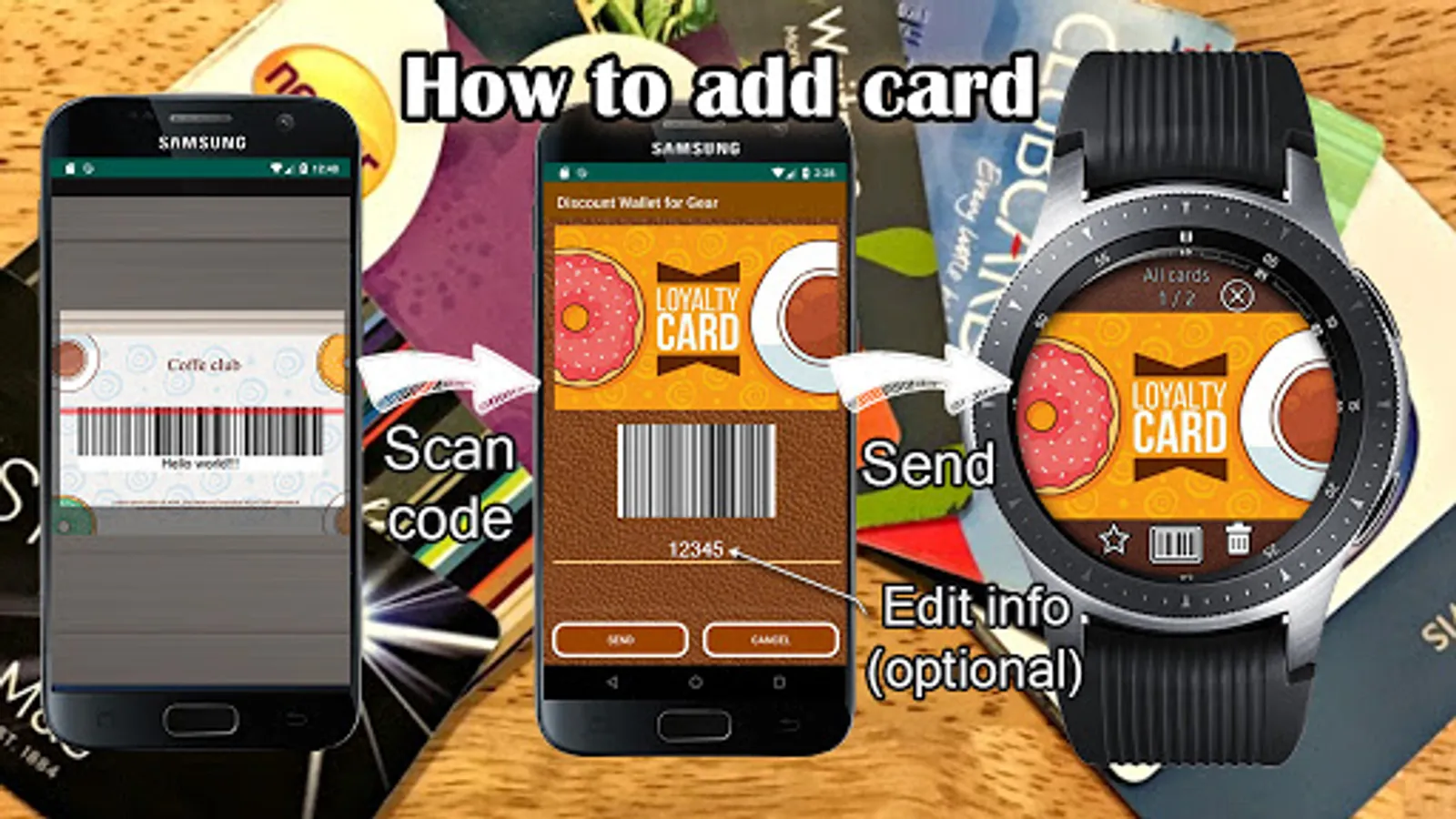 The purpose of the application is to take pictures of discount cards and scan bar codes for sending to the viewer discount cards on Samsung smart watches.