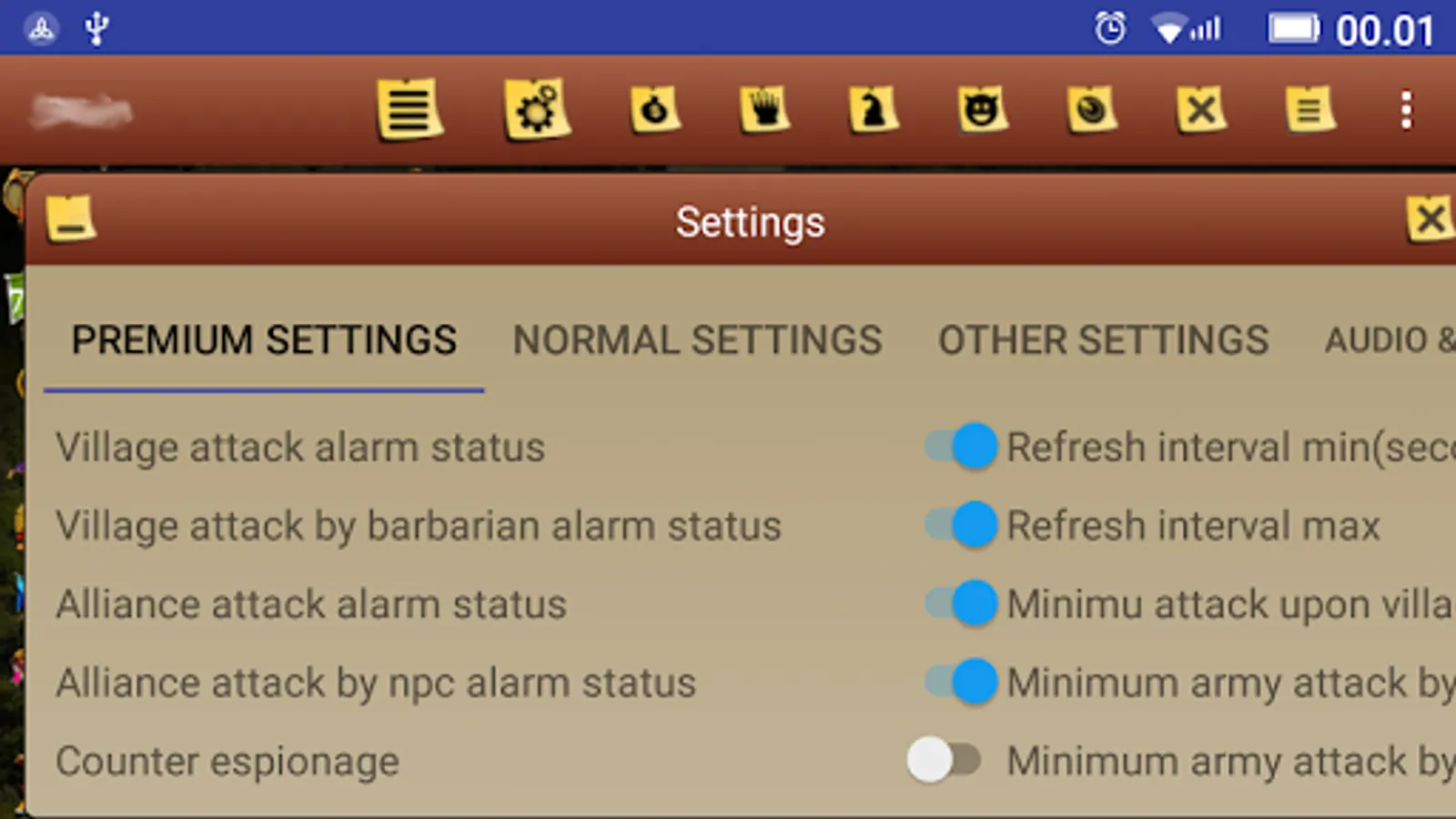 This app will use background service to guard your account and notify you about new incoming attacks into your village or alliance.