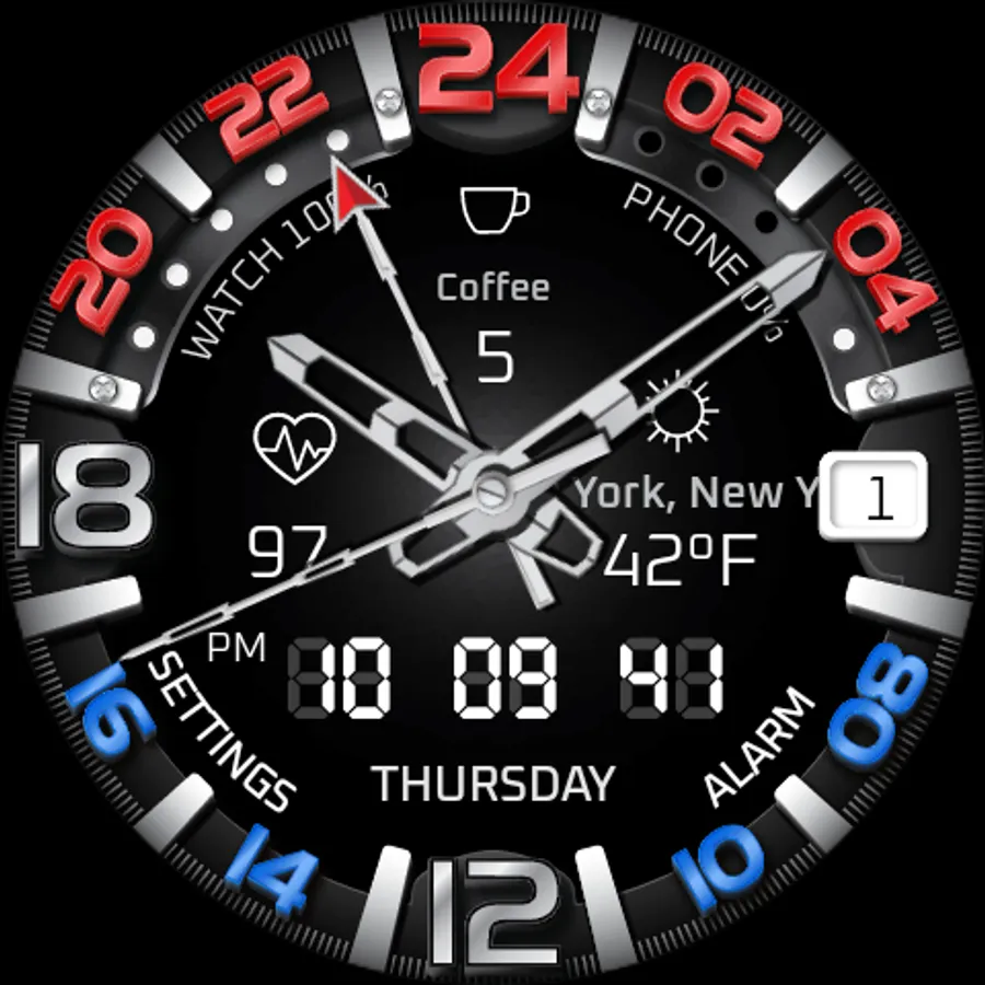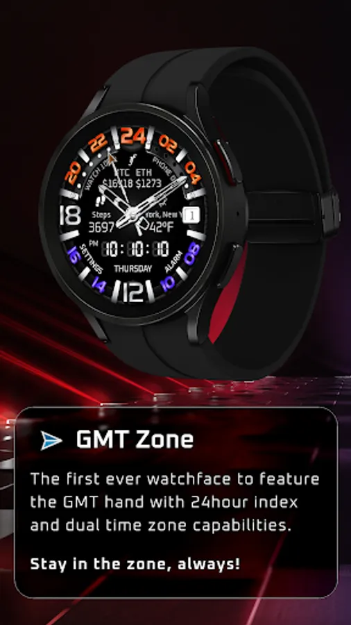 Introducing the GMT Zone watch face! This sleek and stylish watch face is perfect for the jet-setting individual. With its ability to display an additional time zone, you'll never be late for a meeting again. Whether you're in New York, London, or Tokyo, the GMT Zone has you covered.
