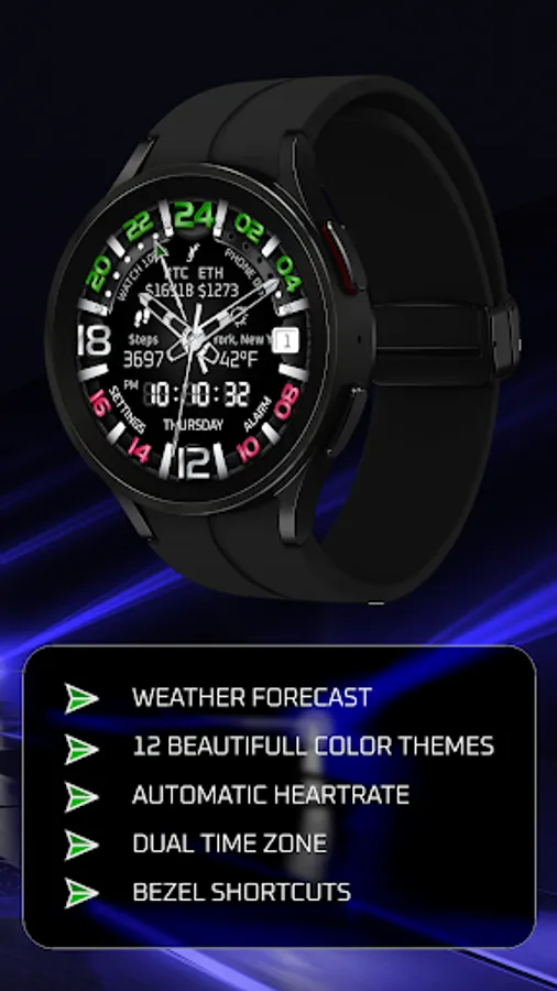 Our new crypto complication allows you to select and track one of favorite coin right on the watch face. You can also customize the update frequency in the settings.