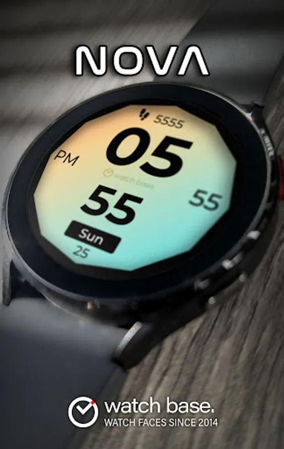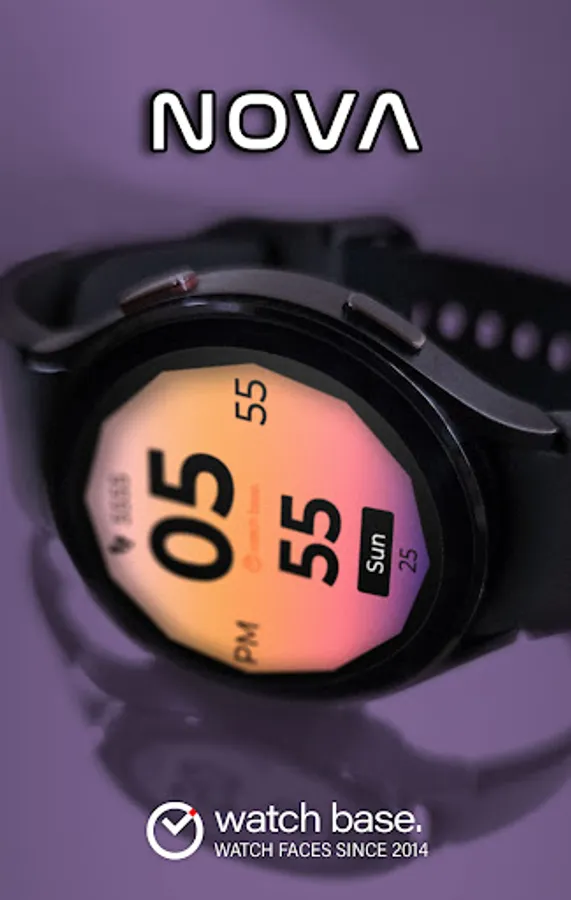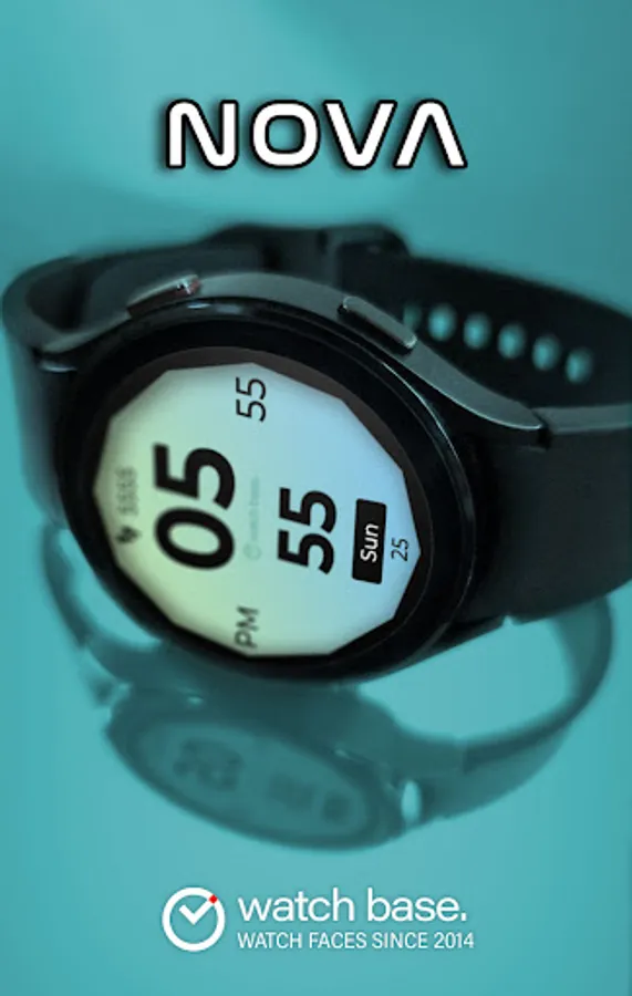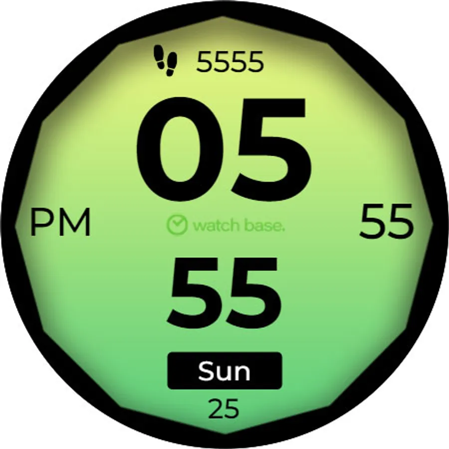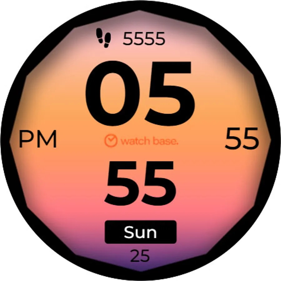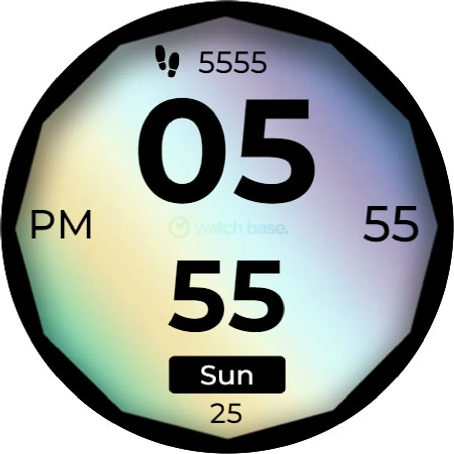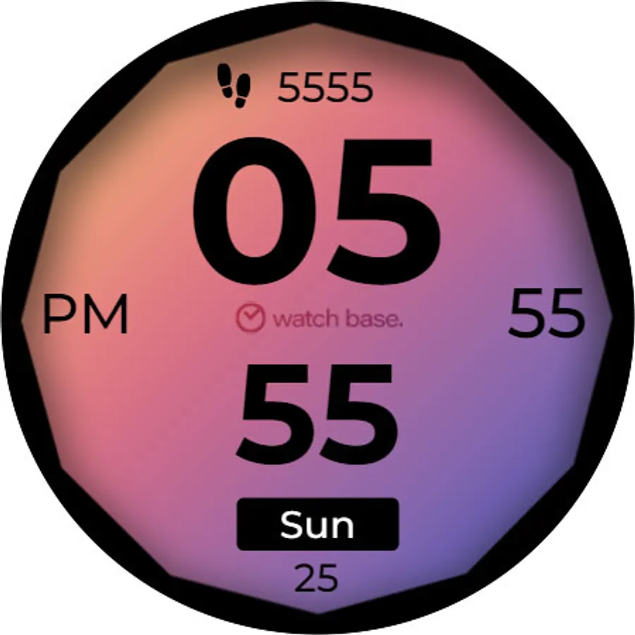 A modern watch face with minimalistic design and essential information coming up in 15 cool color themes.