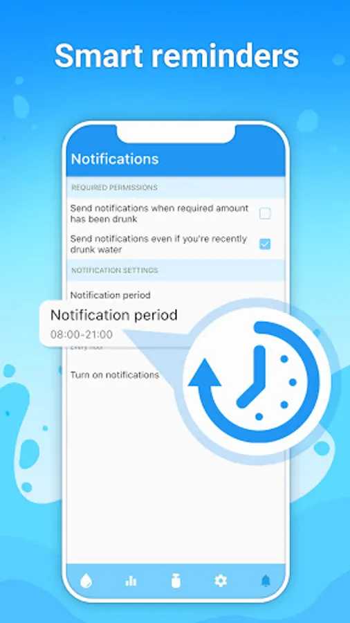 You are the one to set a suitable time interval for notifications and its frequency, so you can be 100% sure that the app won’t wake you in the middle of the night or intrude.