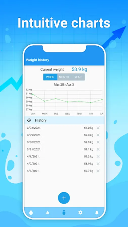 The app will automatically calculate how much water you in particular need to drink with consideration to your gender and weight, moreover it will make adjustments based on the weather conditions and your physical activities.