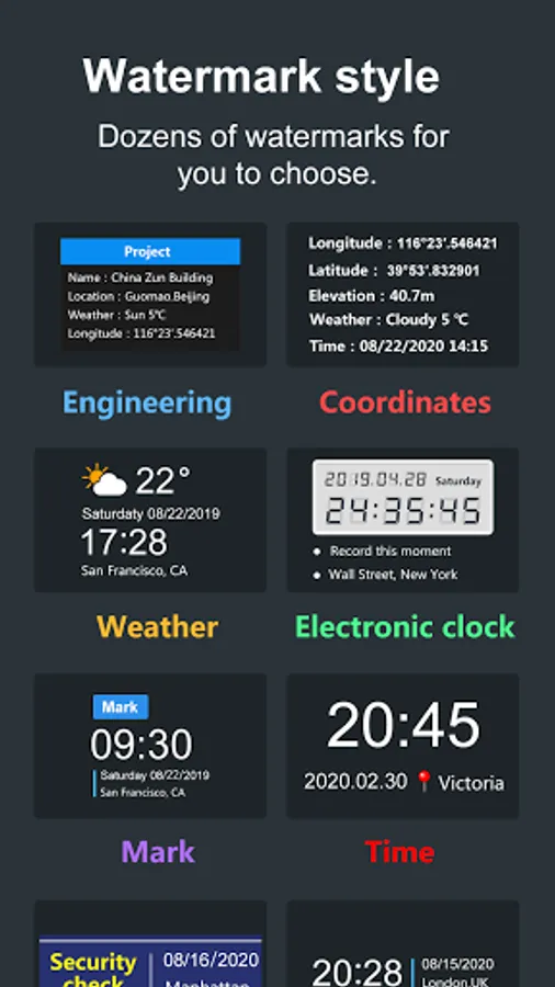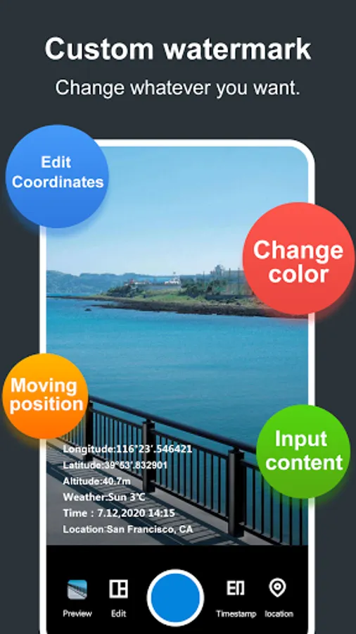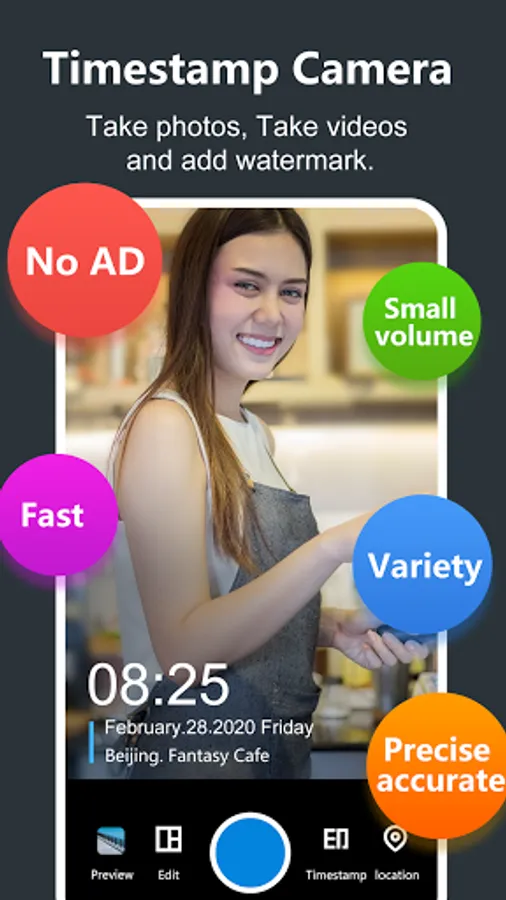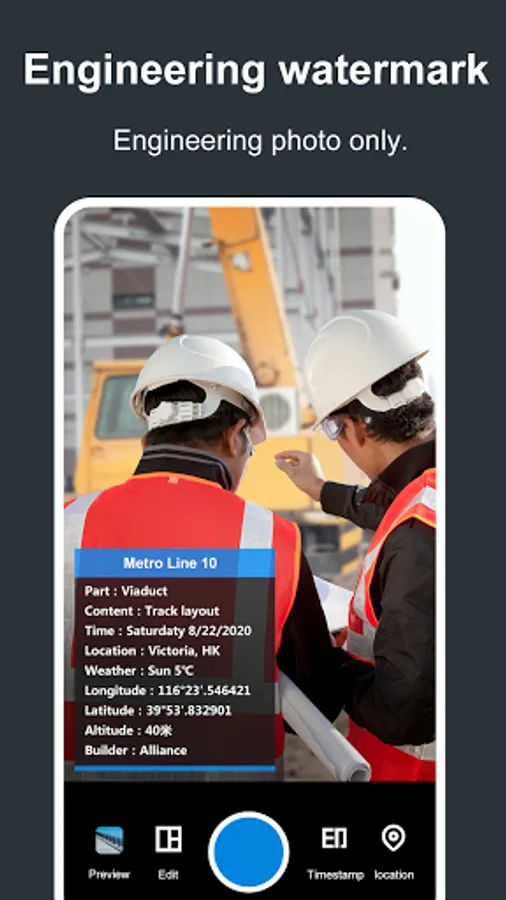 The real time and place cannot be tampered with! Take pictures, take videos and add watermarks. It is a necessary camera software for work recording and taking pictures.