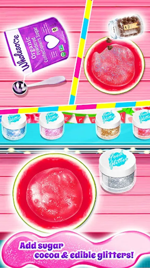 - Tons of food materials and decorations to try: gummy, watermelon, glitter, icing, chocolate and so much more.