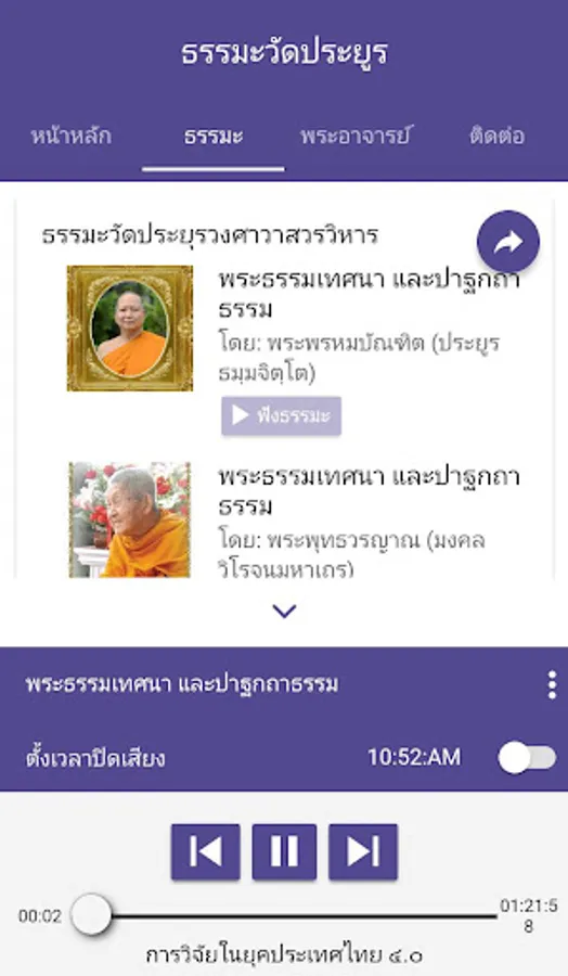 Sermons and lectures Prayurawongsawas Worawihan Temple consists of