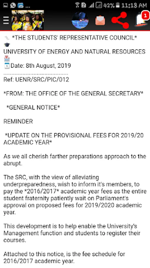 It provides an updated of feeds around UENR CAMPUS and also news from the school website.