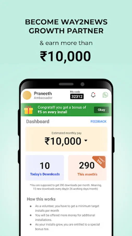 As a growth partner you have to create awareness about way2news app and it’s features amongst local mobile users by interacting with localites daily.