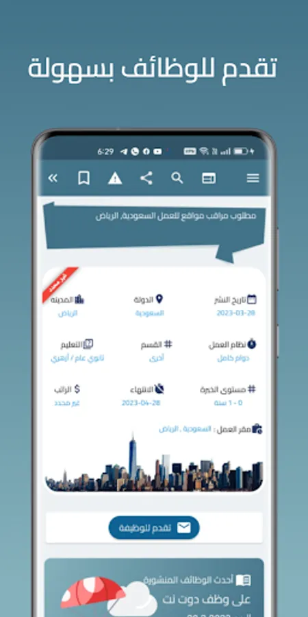 It is the official application of the Wazaf.net website. The site works as a completely free mediator between the employer and the job seeker. All you have to do as an employer is to add the job vacancies available to you to receive applications from specialists interested in your job field.