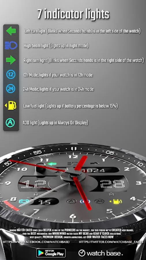 Very cool and realistic car dashboard watch face. A must for all car lovers!