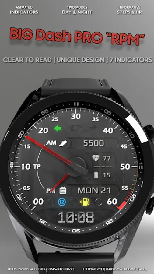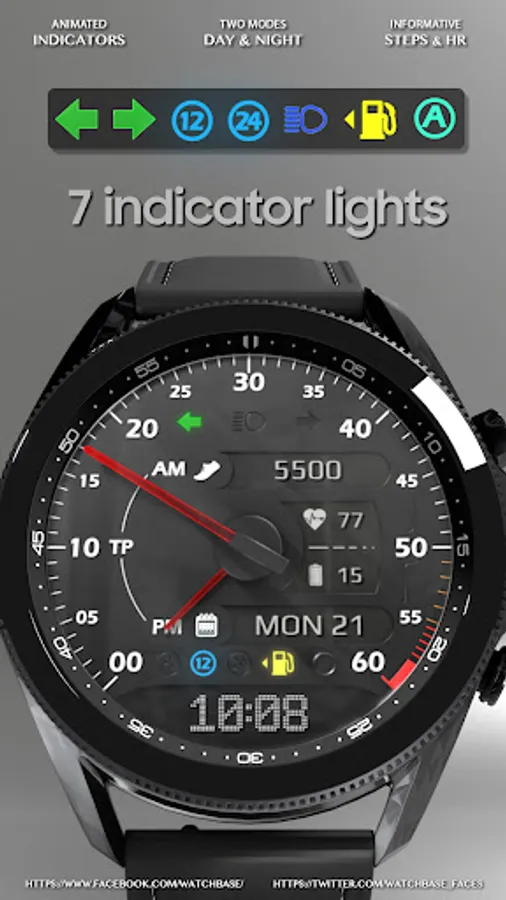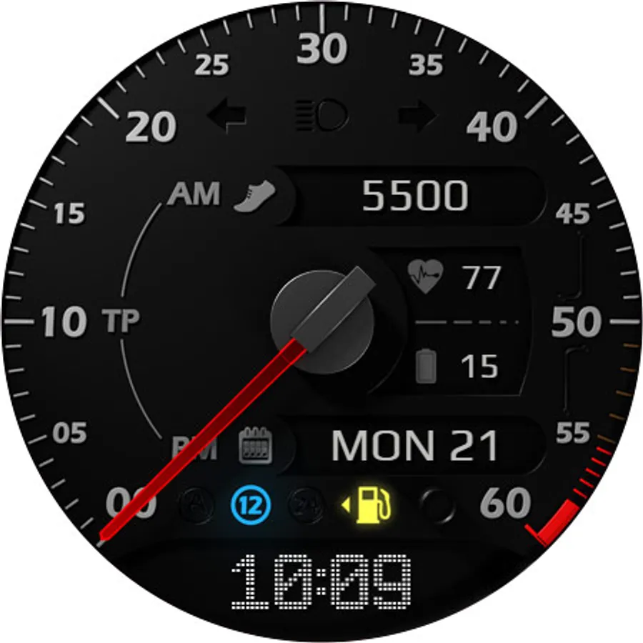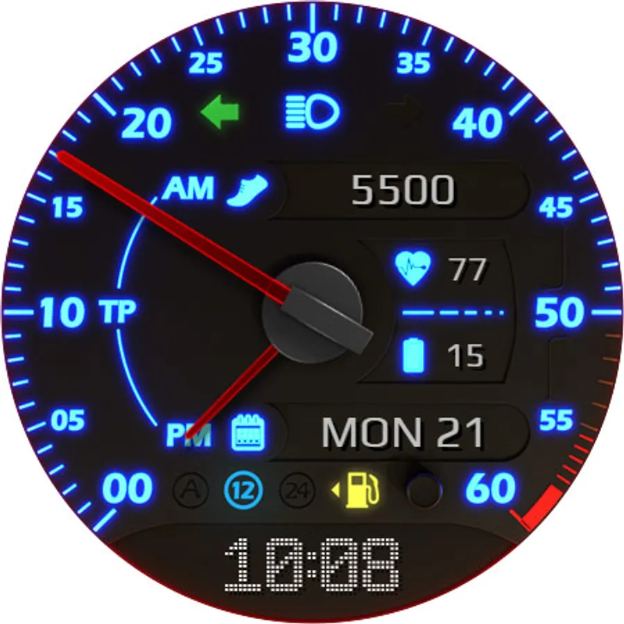 - Left turn light (Blinks when Seconds hands is in the left side of the watch).