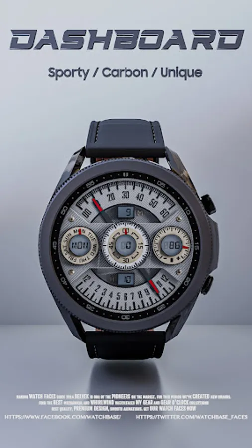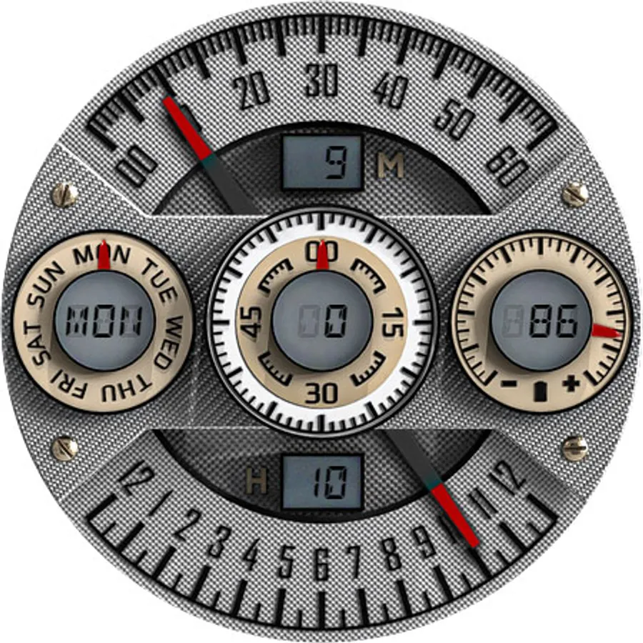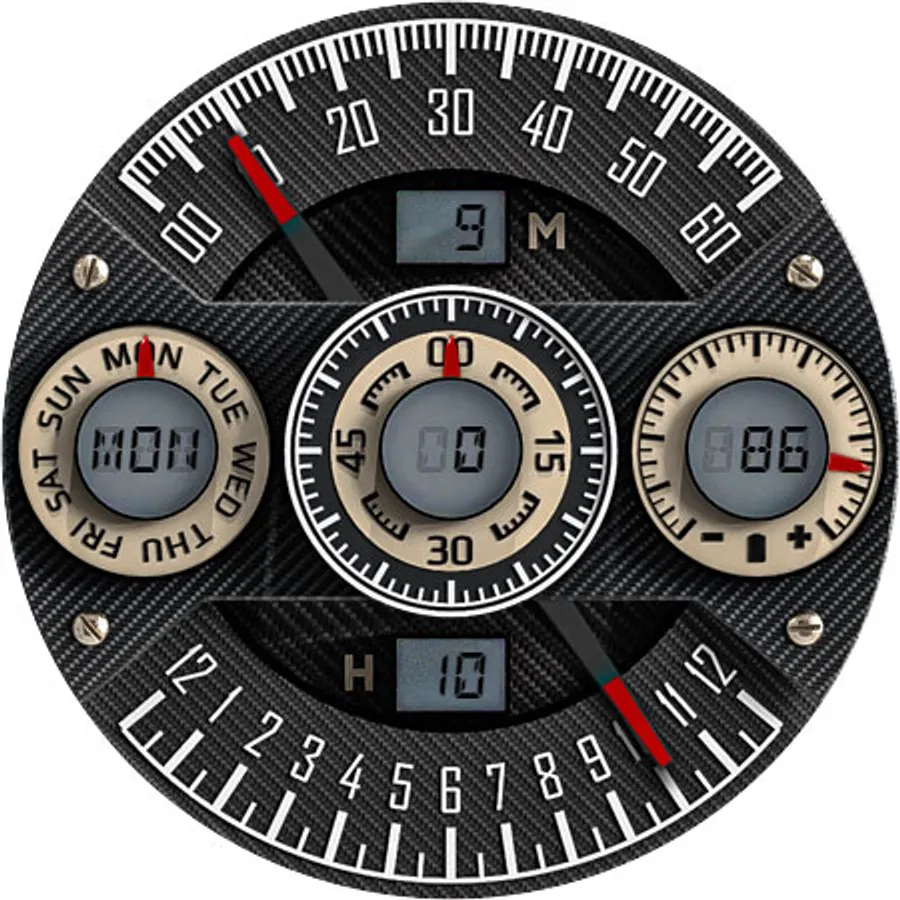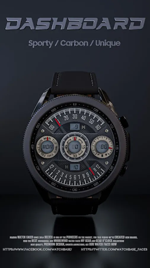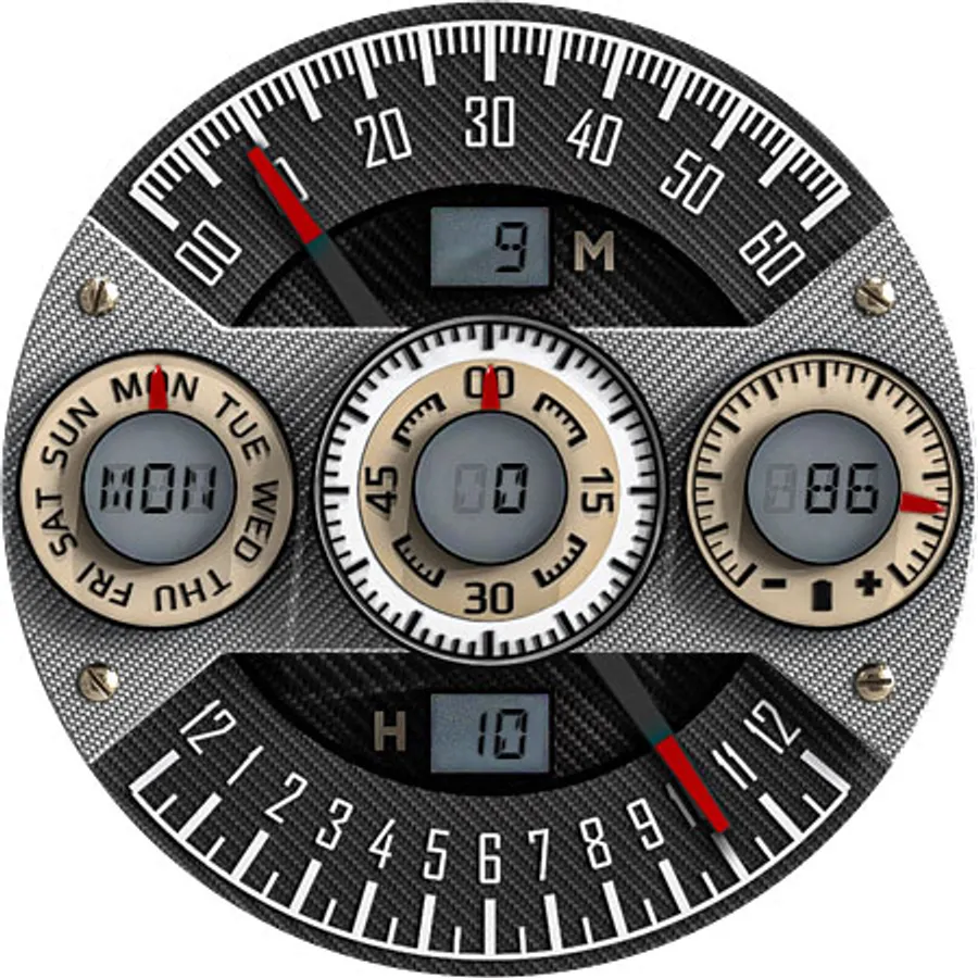 A cool looking dashboard like watch face with carbon elements.