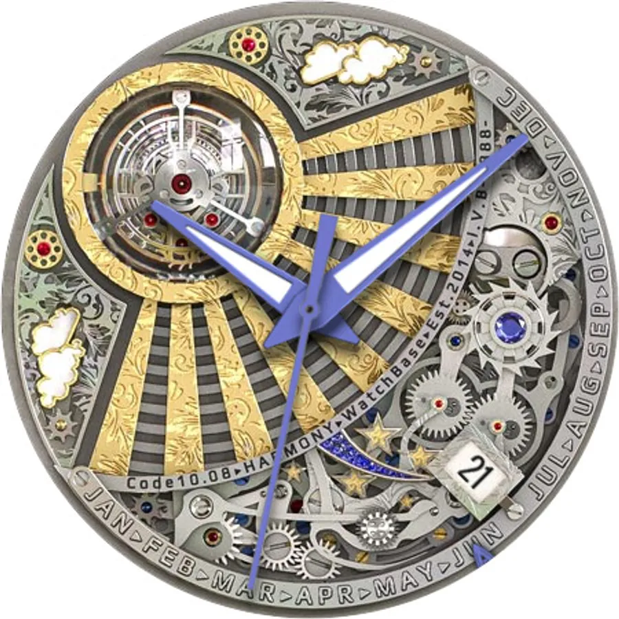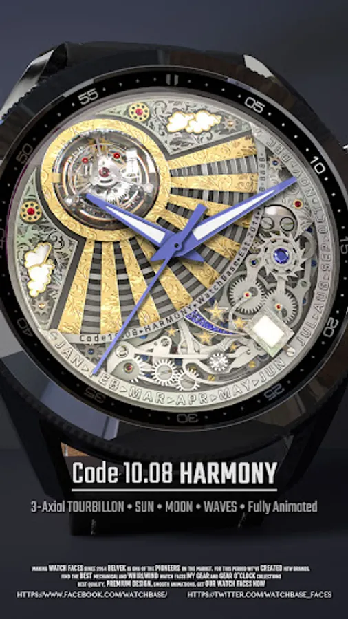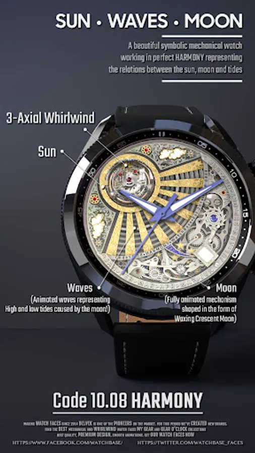 A beautifully animated mechanical watch working in perfect HARMONY representing the relations between the sun, moon and tides.